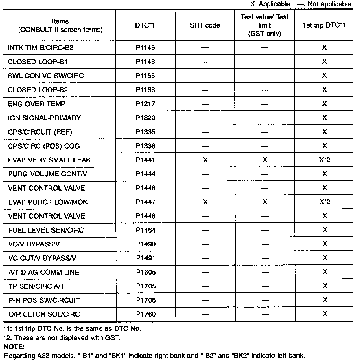 TEST VALUE AND TEST LIMIT (GST ONLY - NOT APPLICABLE TO CONSULT-II)
