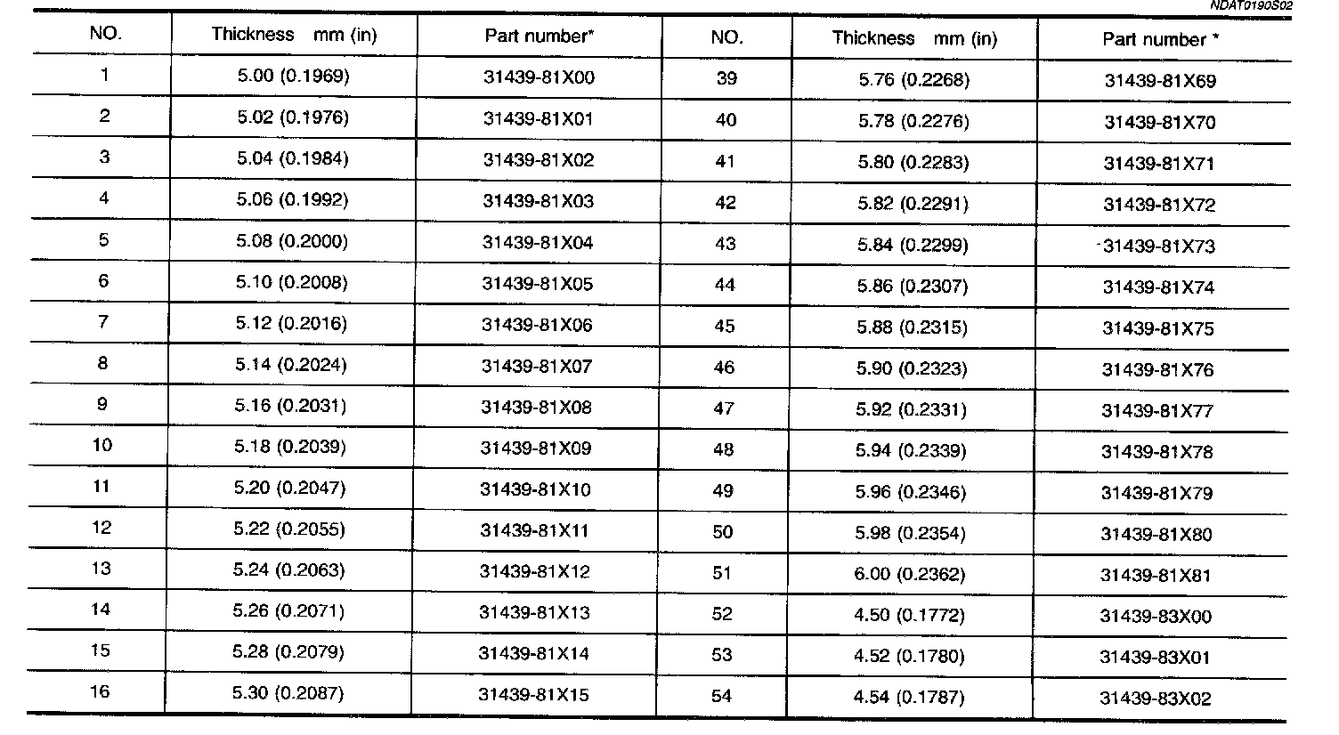 OUTPUT SHAFT ADJUSTING SHIMS