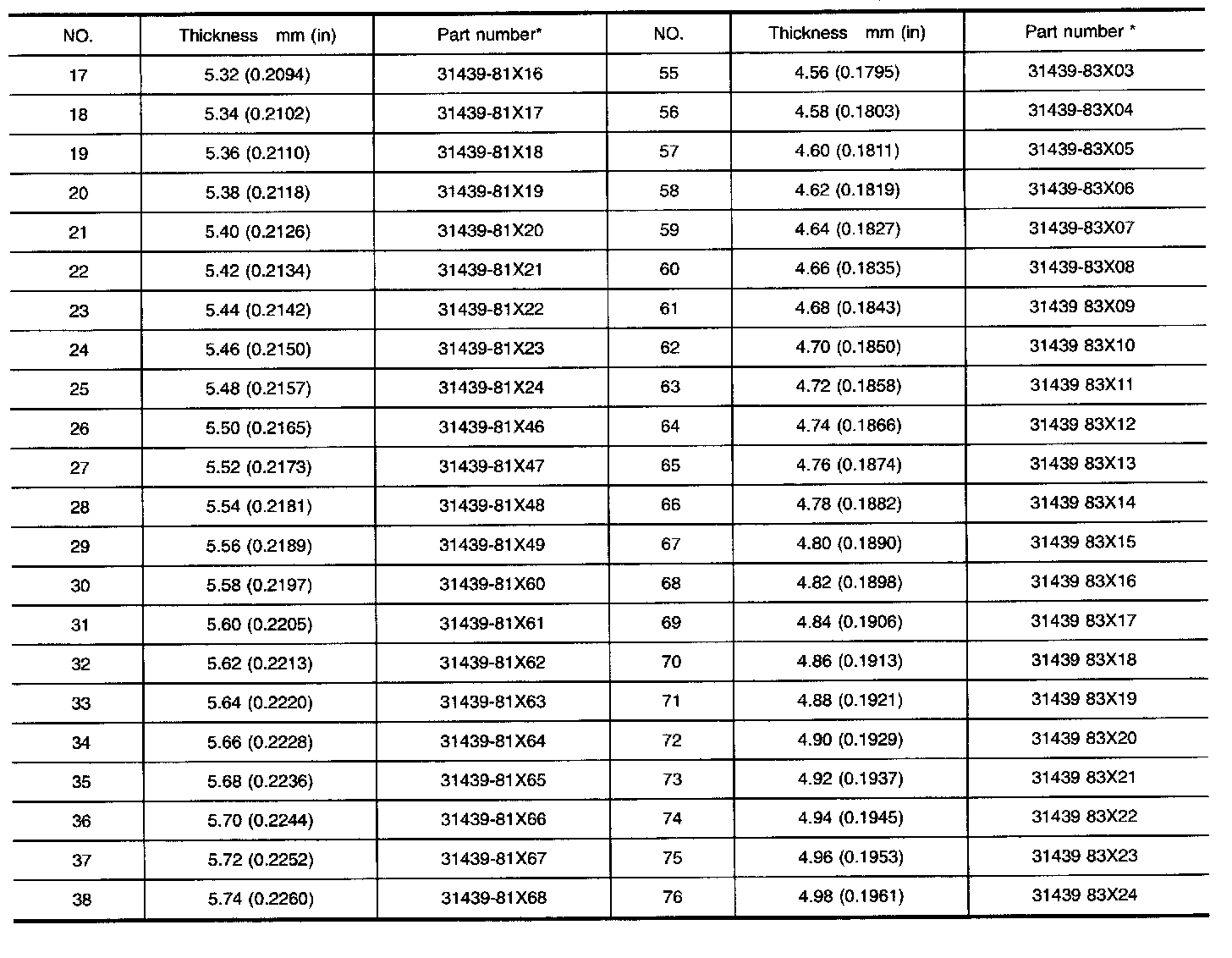 DIFFERENTIAL SIDE BEARING PRELOAD ADJUSTING SHIMS