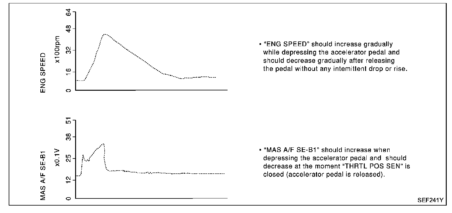The signal of "THRTL POS SEN" and "ABSOL TH P/S" should rise gradually without any intermittent drop or rise after "CLSD THL POS" is changed from "ON" to "OFF"