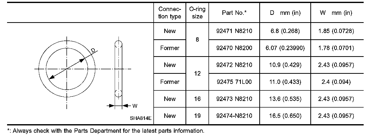 O-Ring Part Numbers And Specifications: