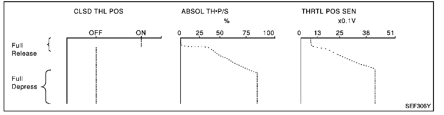 The following are the major sensor reference graphs in "DATA MONITOR" mode.THRTL POS SEN, ABSOL TH.P/S, CLSD THL POS