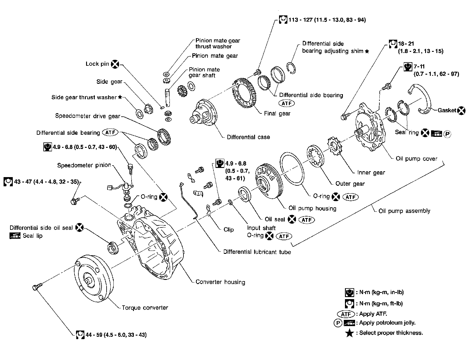 Locations of Adjusting Shims, Needle Bearings, Thrust Washers and Snap Rings: