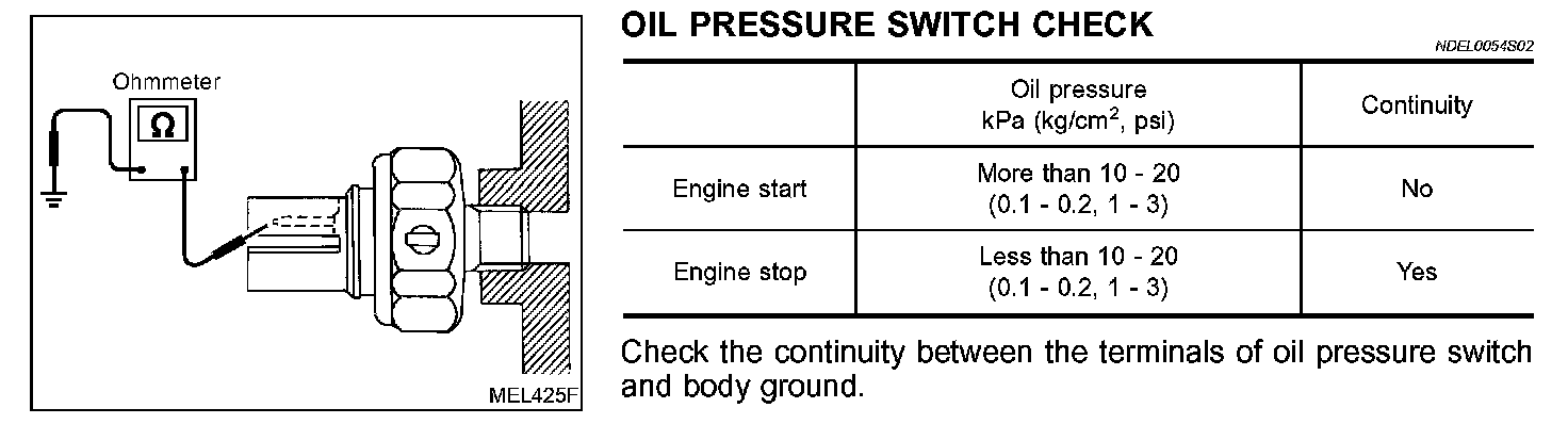 Oil Pressure Switch Check: