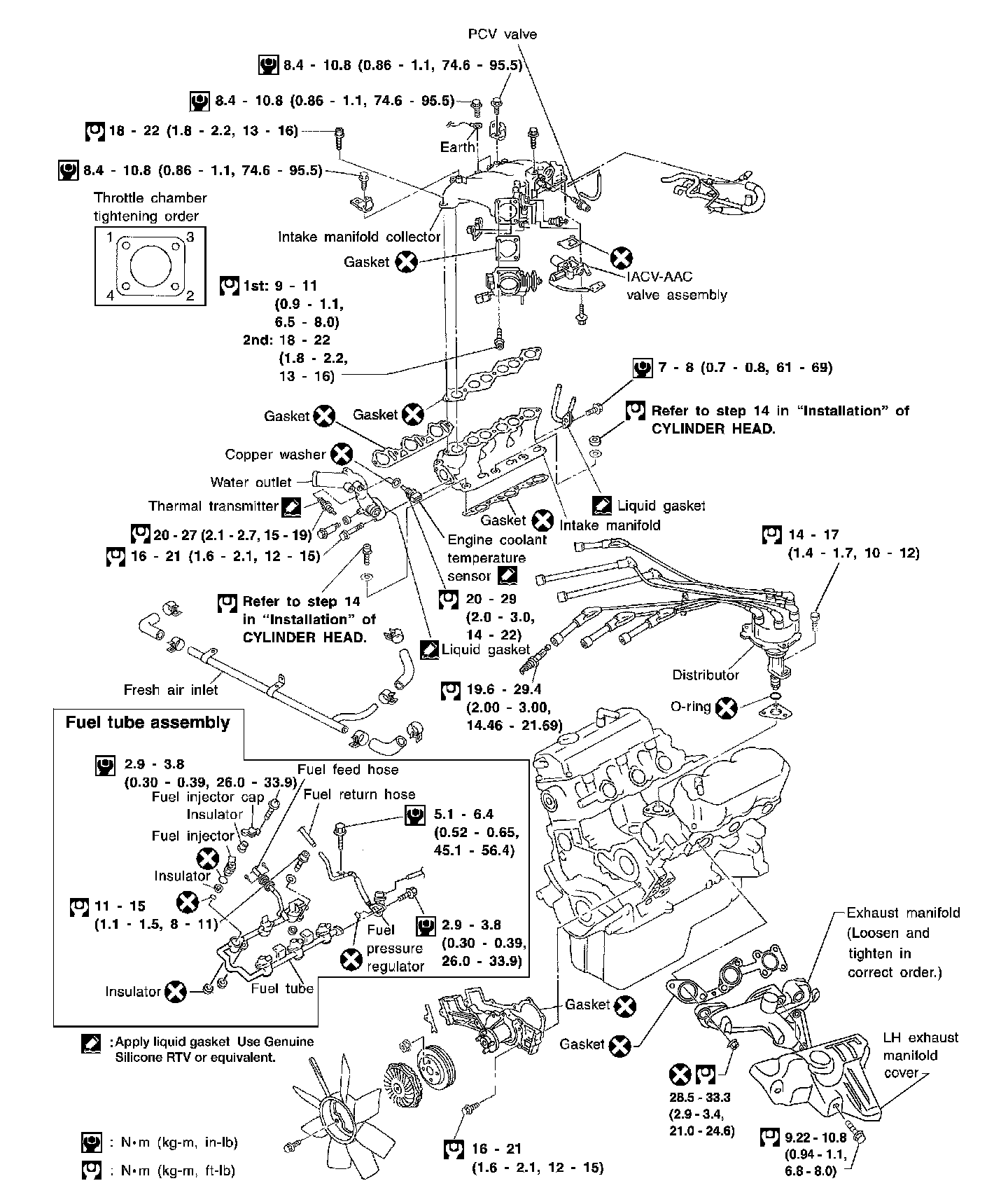 Fuel Tube Assembly, Exhaust Manifold, ECT Sensor, Thermal Transmitter, PCV Valve, Throttle Chamber: