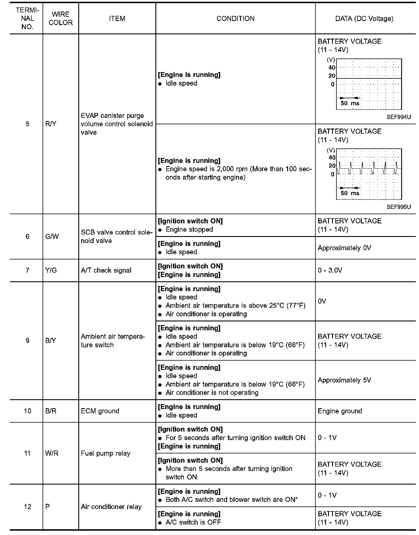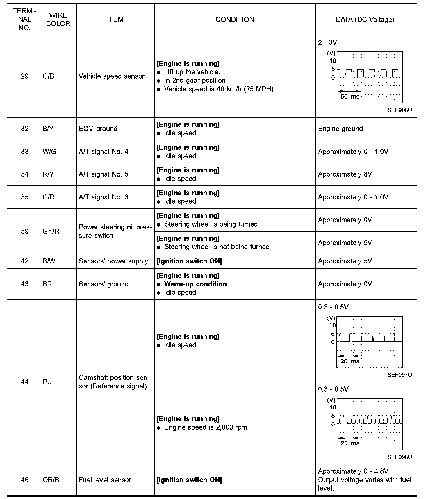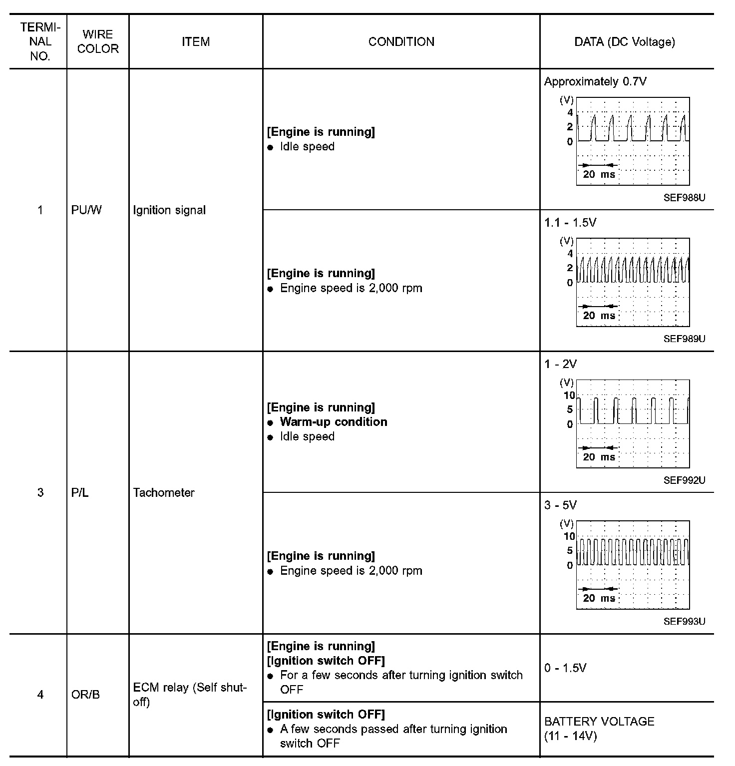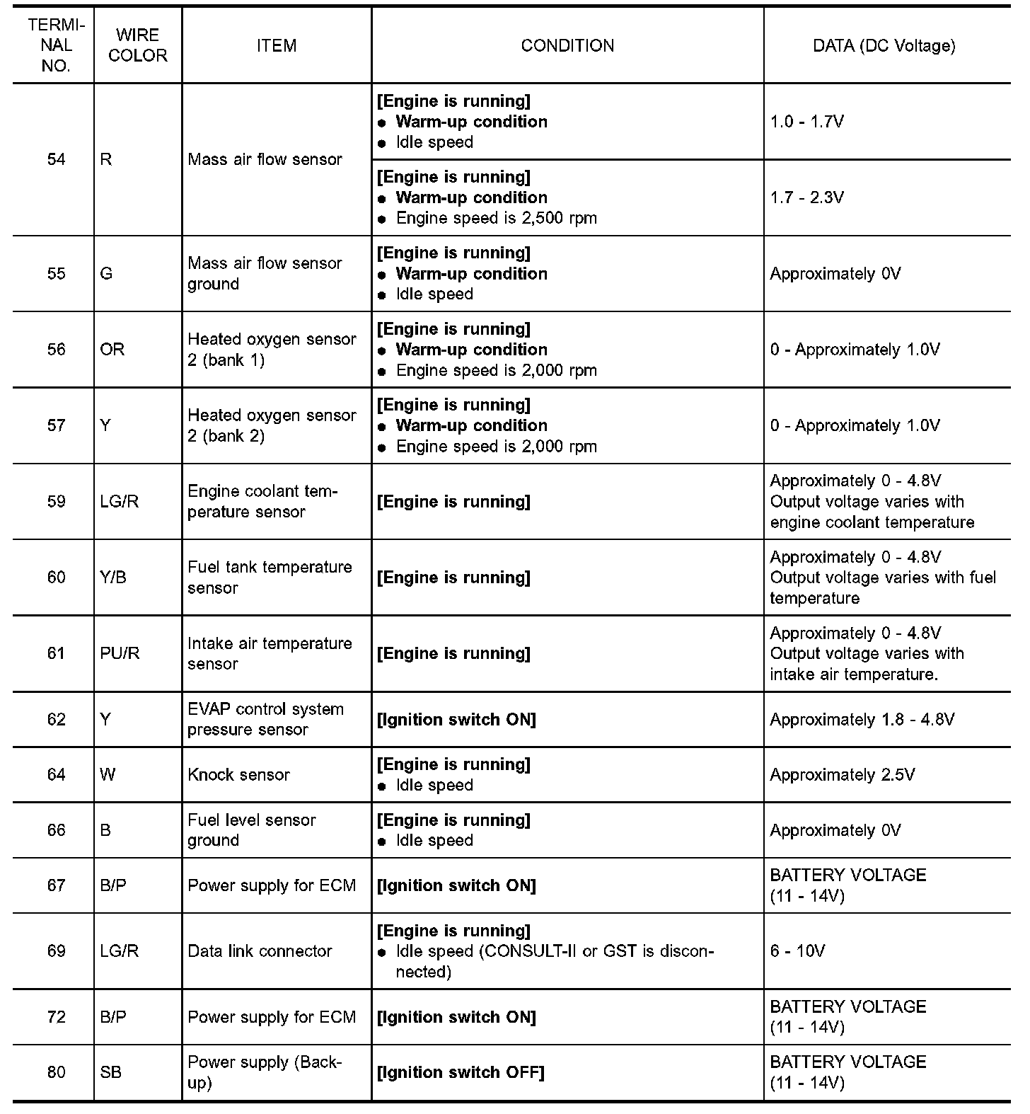 ECM Harness Connector Terminal Layout: