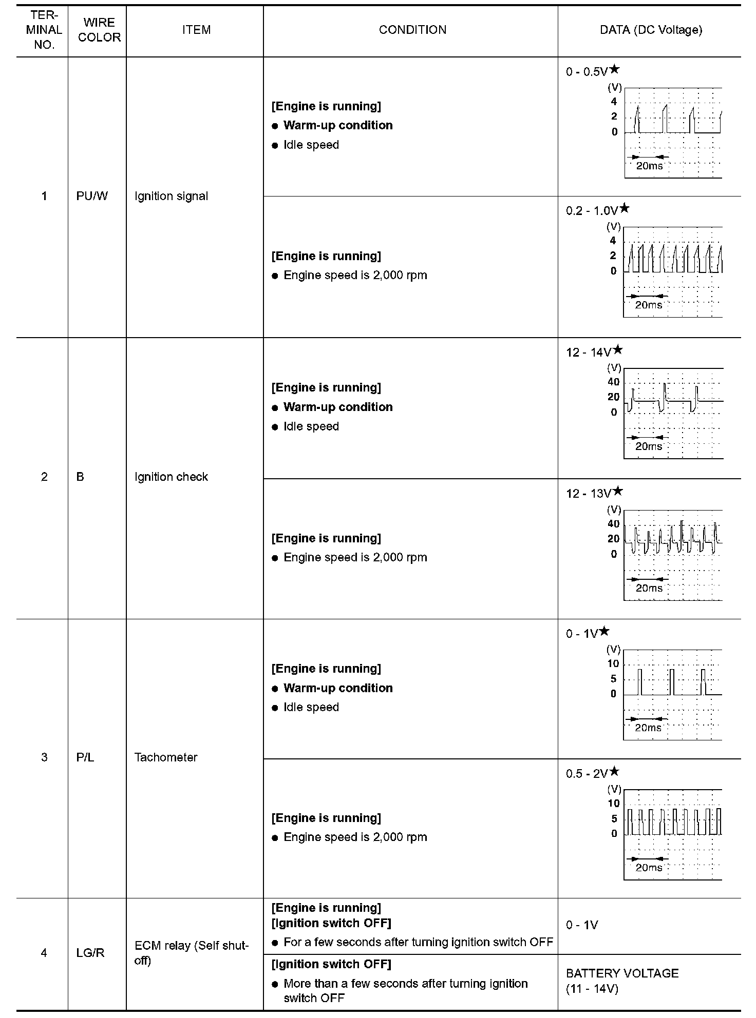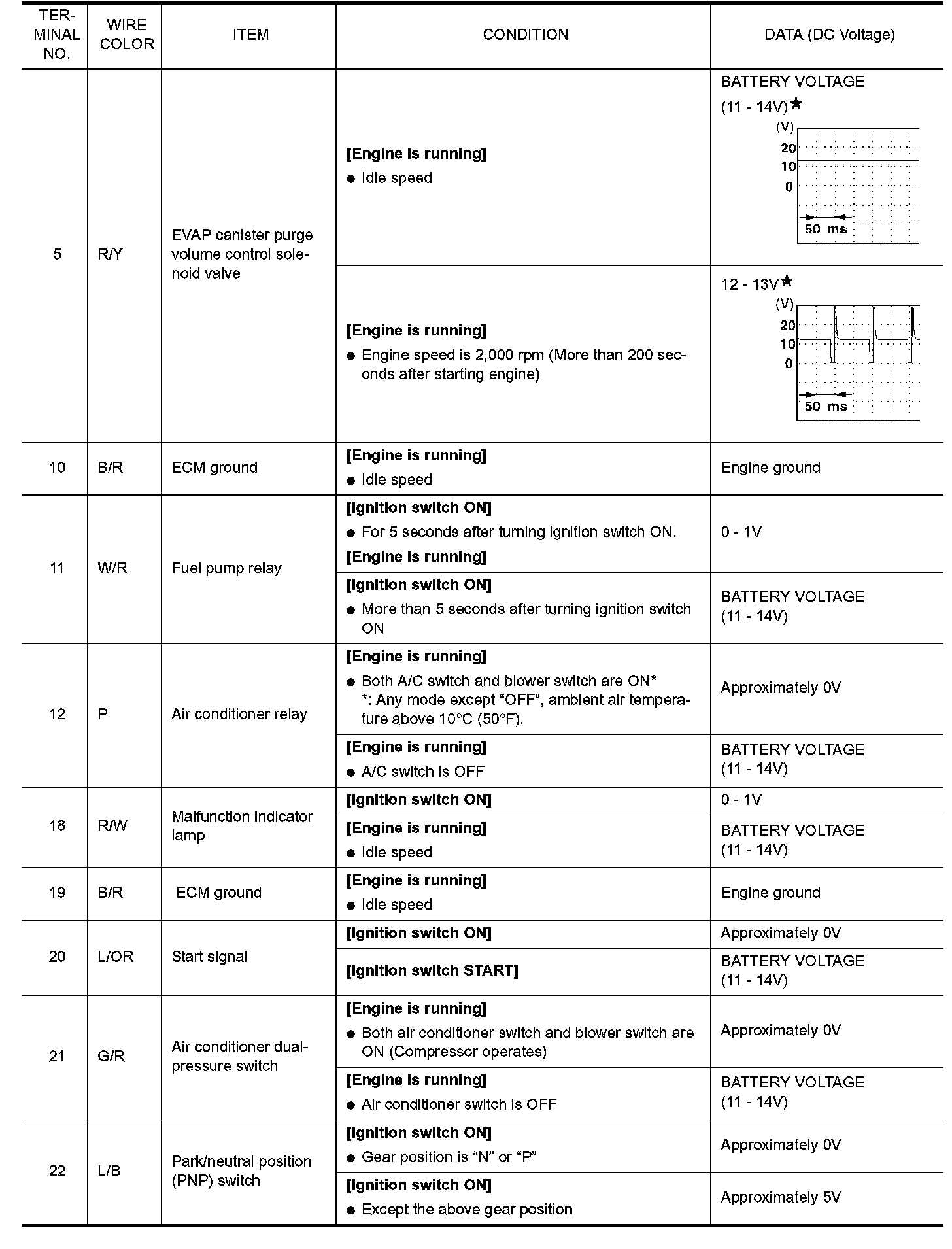 ECM Harness Connector Terminal Layout: