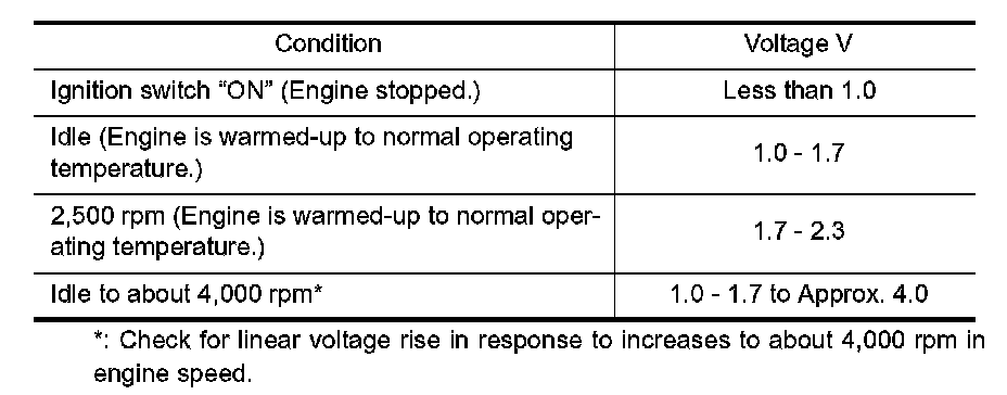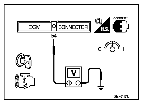 3. Check voltage between ECM terminal 54 (Mass air flow sensor signal) and ground.