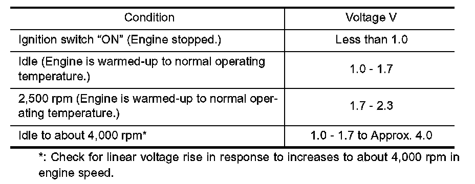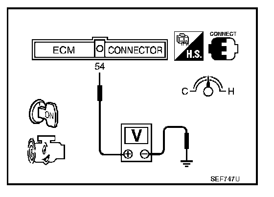 3. Check voltage between ECM terminal 54 (Mass air flow sensor signal) and ground.