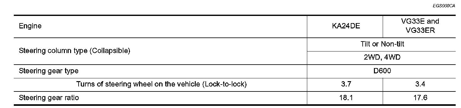 POWER STEERING / General Specs: