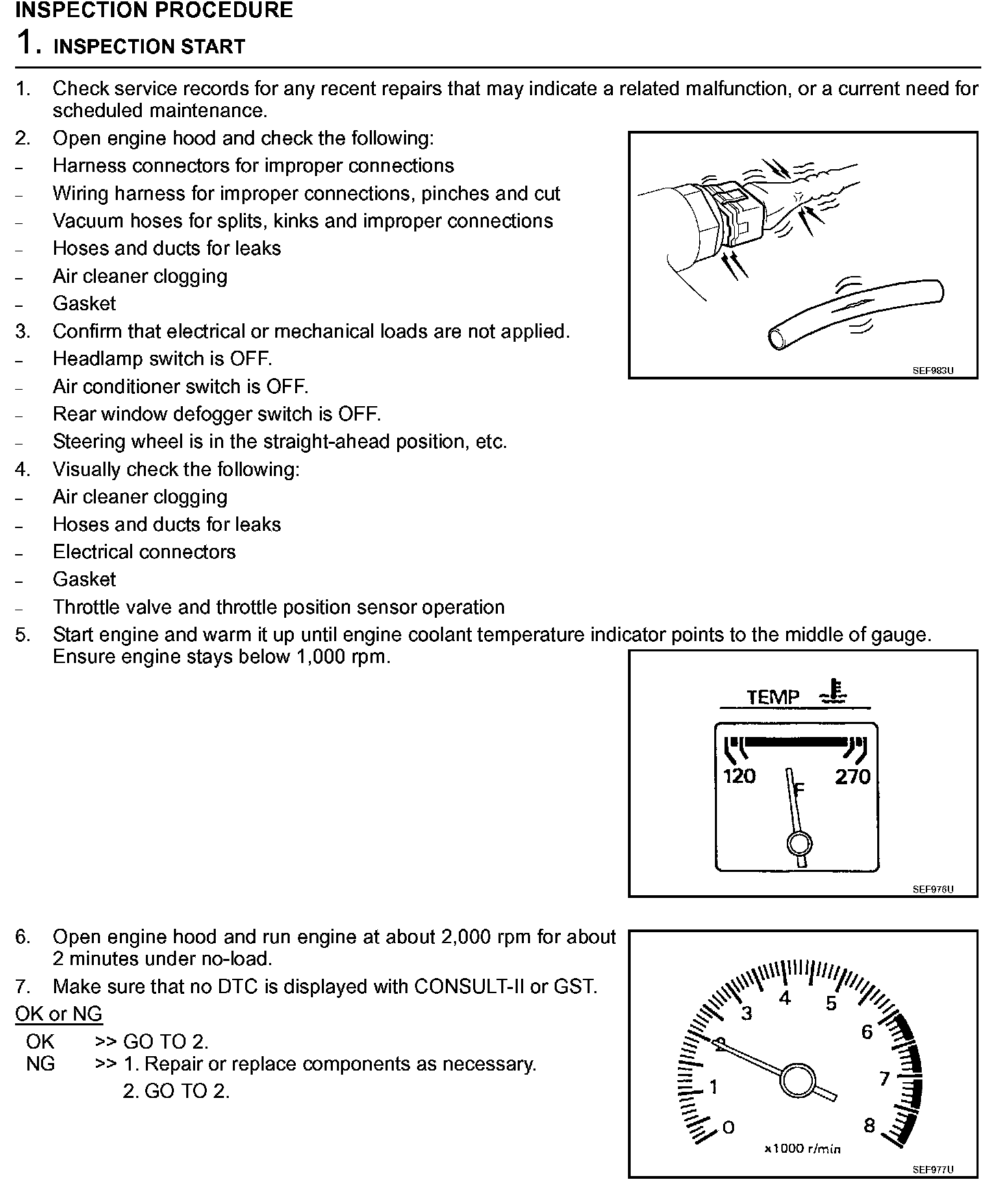 2. On air conditioner equipped models, checks should be carried out while the air conditioner is OFF.