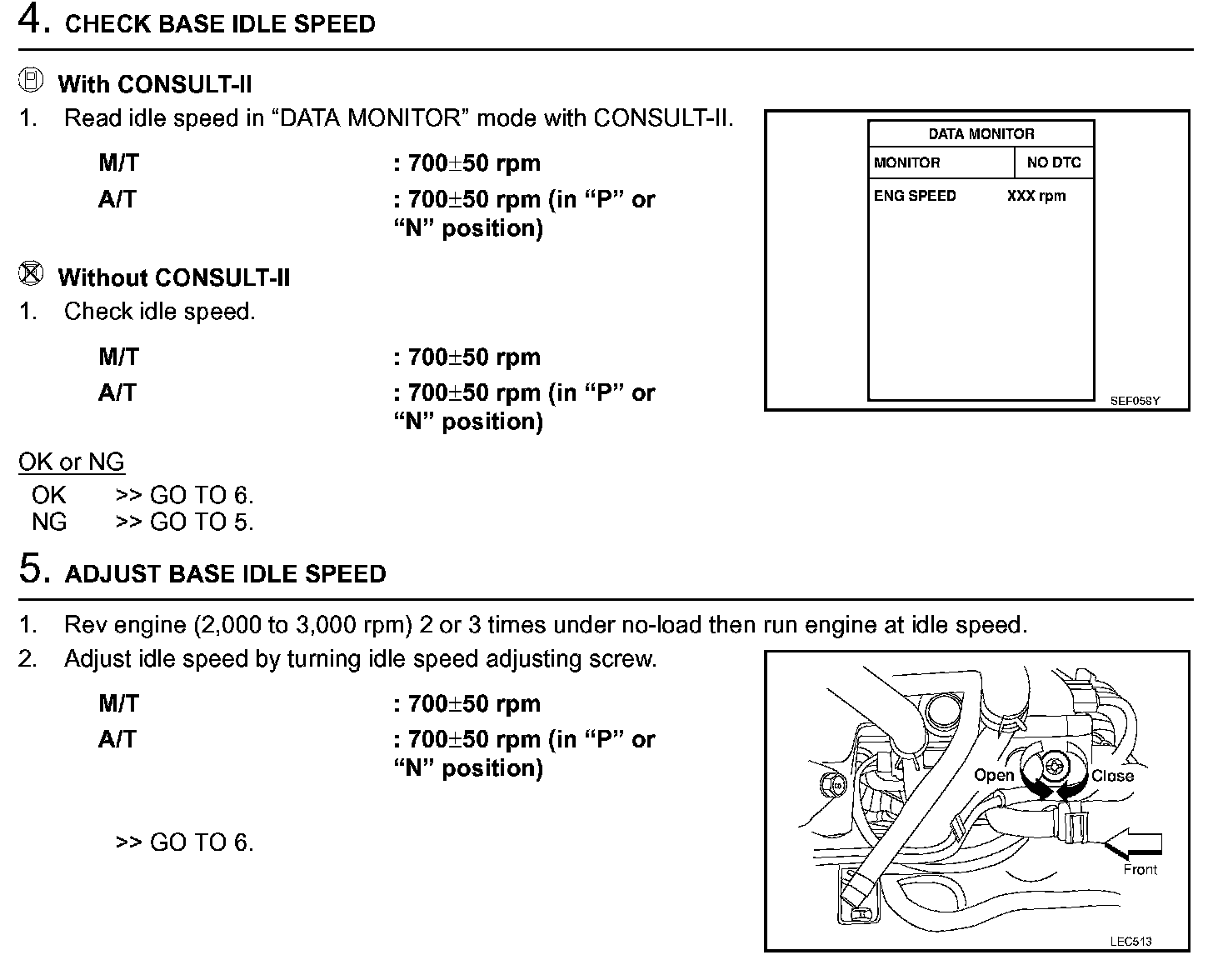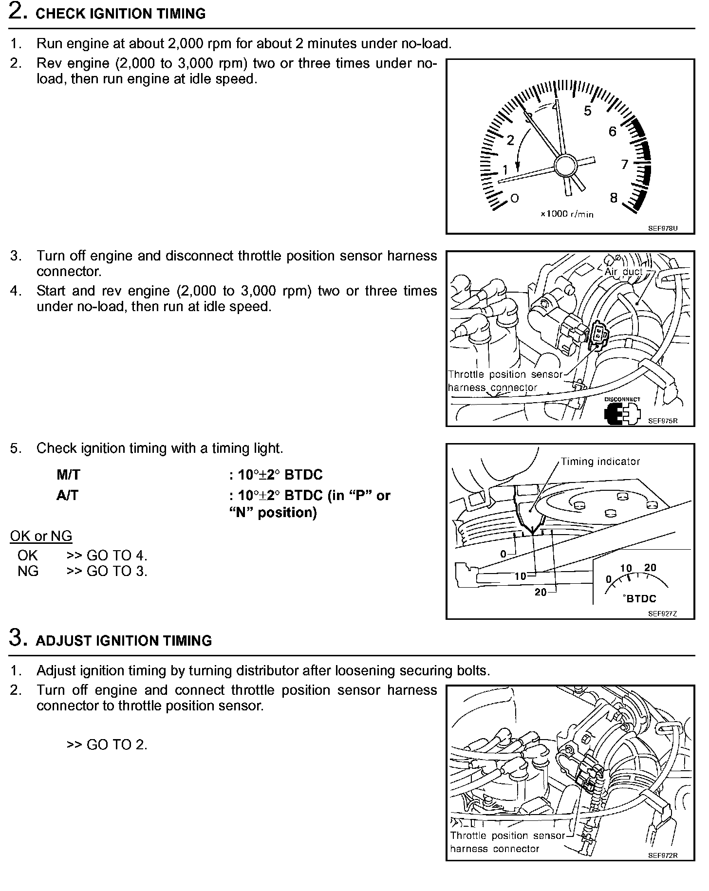 3. On automatic transmission equipped models, when checking idle rpm, ignition timing and mixture ratio, checks should be carried out while shift lever is in N position.