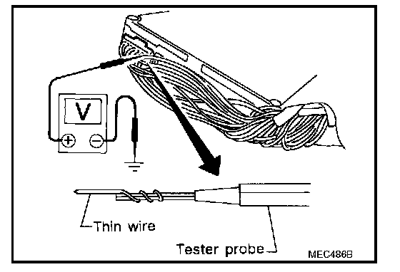 3. Perform all voltage measurements with the connector connected. Extend tester probe as shown to perform tests easily.