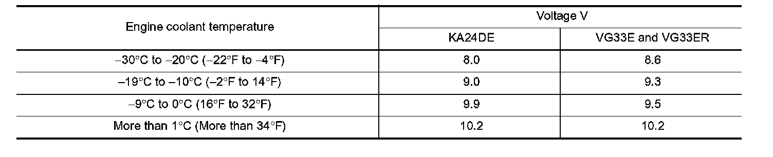 Minimum Specification Of Cranking Voltage Referencing Coolant Temperature: