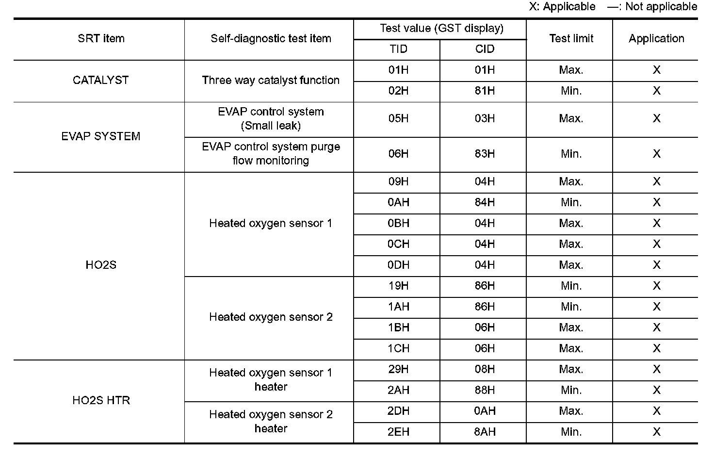 The test value is a parameter used to determine whether a system/circuit diagnostic test is "OK" or "NG" while being monitored by the ECM during self-diagnosis. The test limit is a reference value which is specified as the maximum or minimum value and is compared with the test value being monitored.