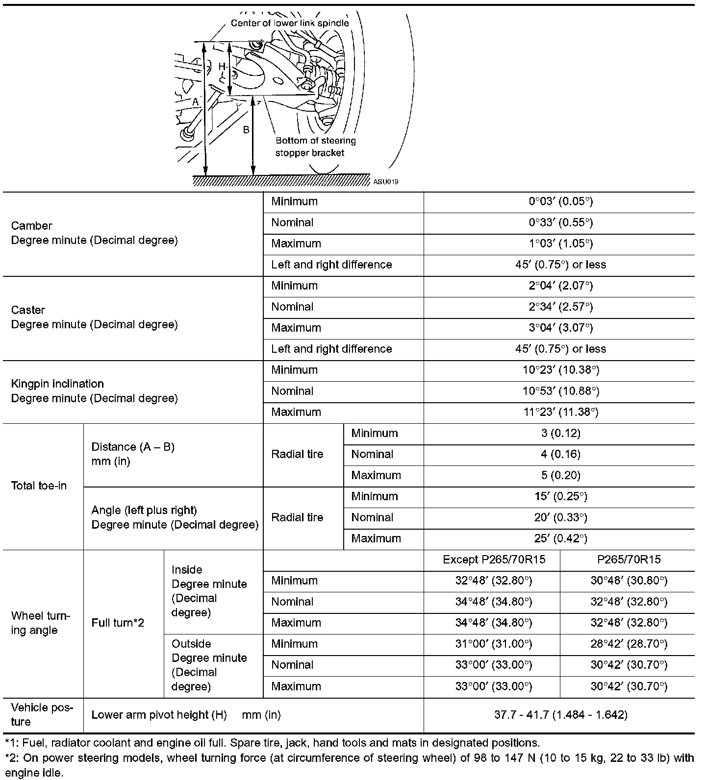 FRONT SUSPENSION - Wheel Alignment (Unladen) [2WD]: