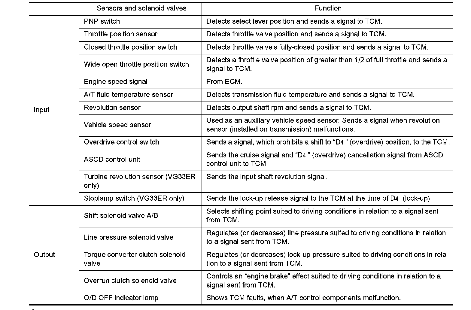 INPUT/OUTPUT SIGNAL OF TCM: