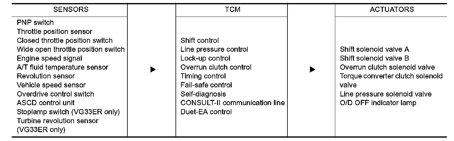 The automatic transmission senses vehicle operating conditions through various sensors. It always controls the optimum shift position and reduces shifting and lock-up shocks.