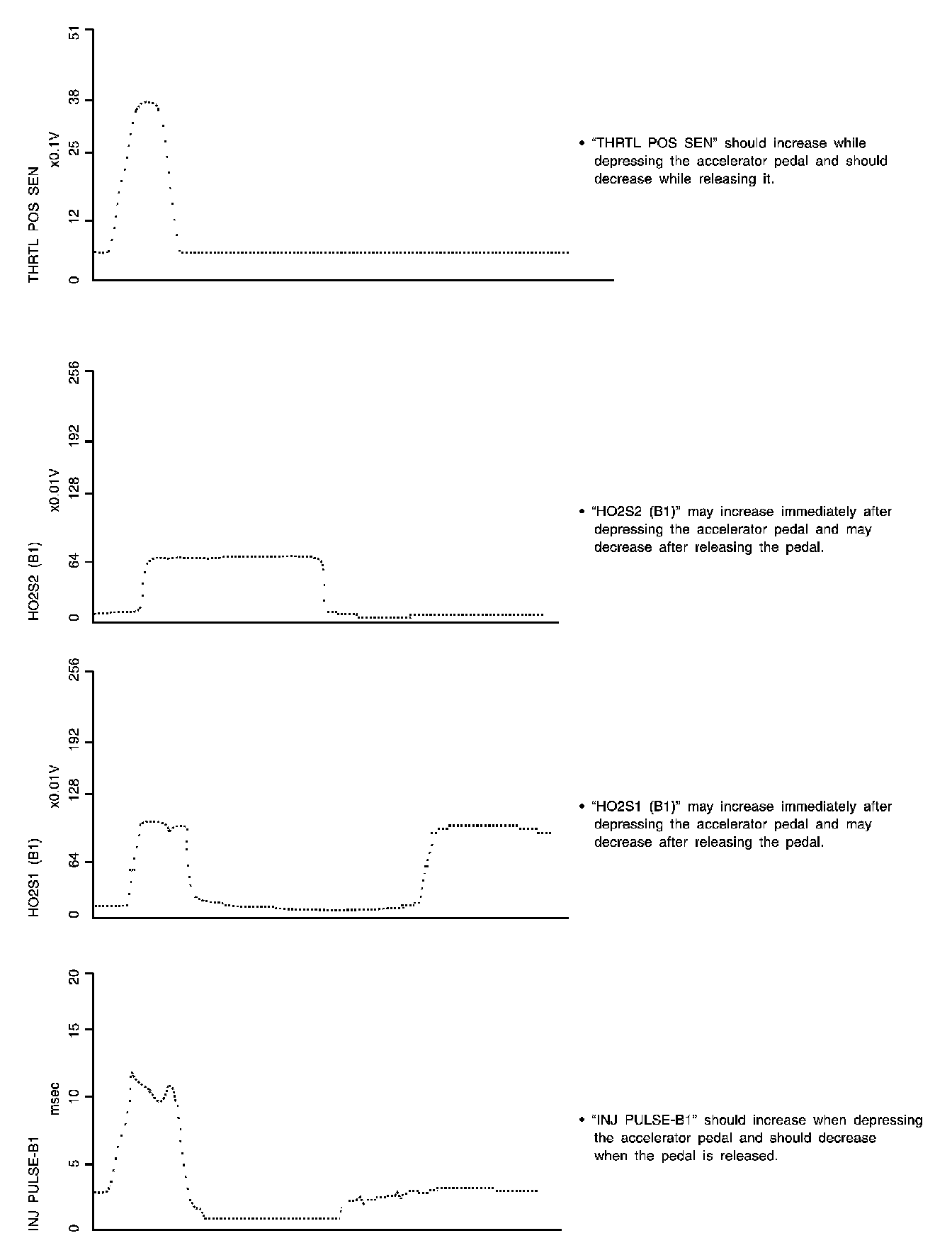 ENG SPEED, MAS A/F SE-B1, THRTL POS SEN, HO2S2 (B1), HO2S1 (B1), INJ PULSE-B1