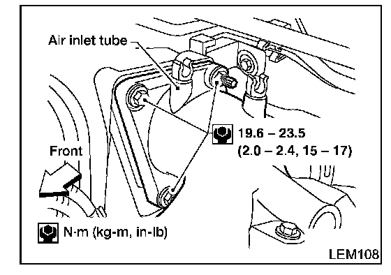 - Remove the air inlet tube bolts, nuts, and studs. Position the air inlet tube aside.