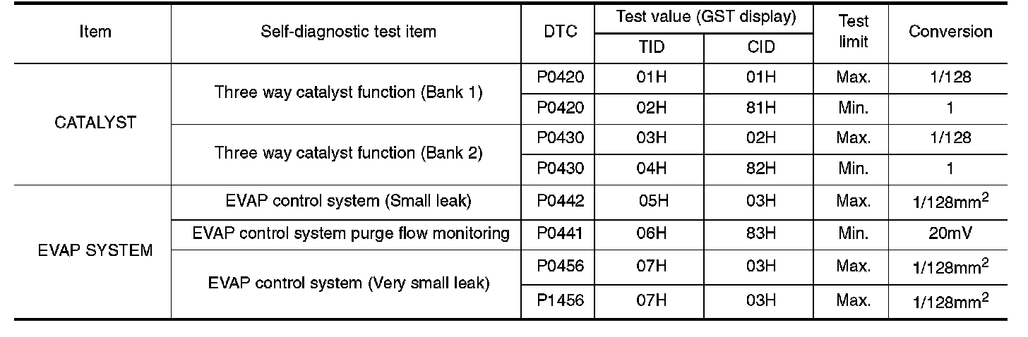 TEST VALUE AND TEST LIMIT (GST ONLY - NOT APPLICABLE TO CONSULT-II)Part 1: