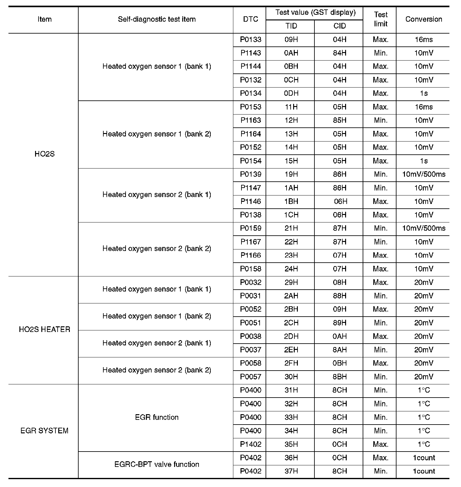 The test value is a parameter used to determine whether a system/circuit diagnostic test is "OK" or "NG" while being monitored by the ECM during self-diagnosis. The test limit is a reference value which is specified as the maximum or minimum value and is compared with the test value being monitored.