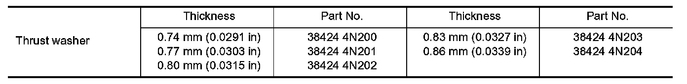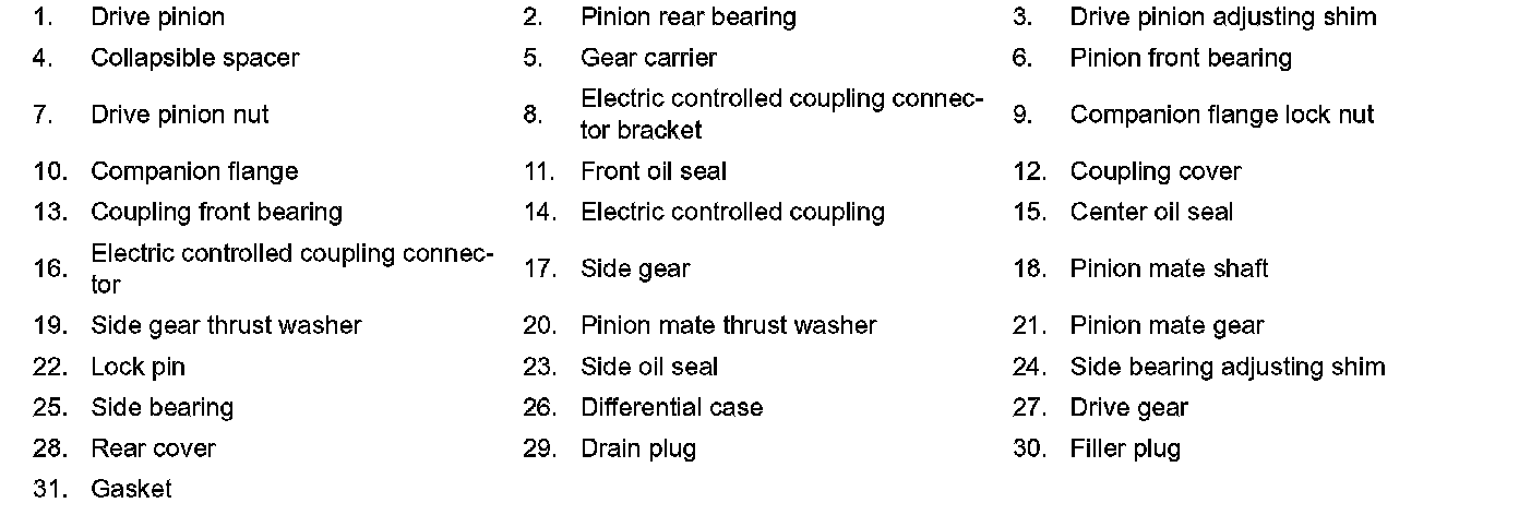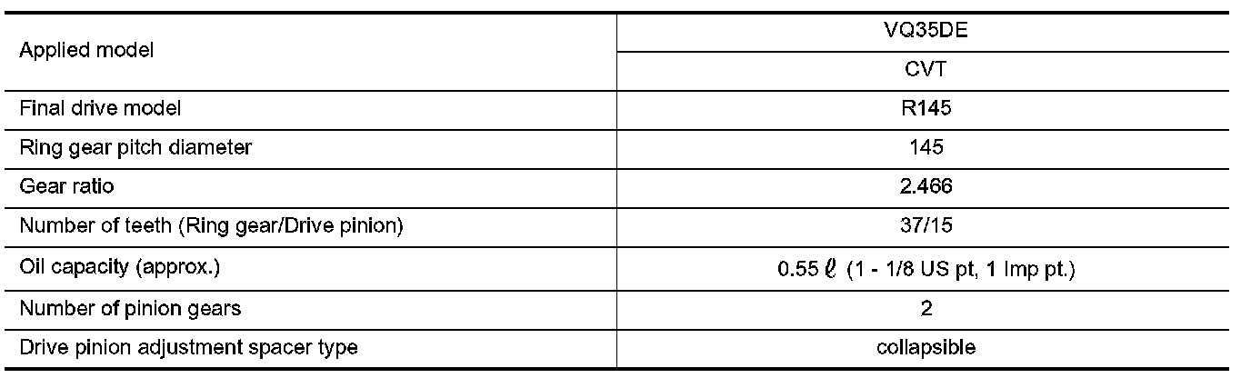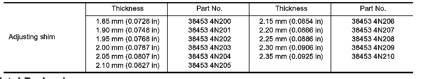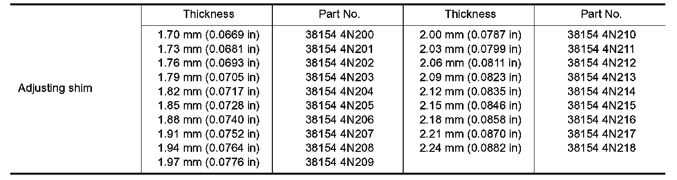REAR FINAL DRIVE / AVAILABLE DRIVE PINION ADJUSTING SHIM:
