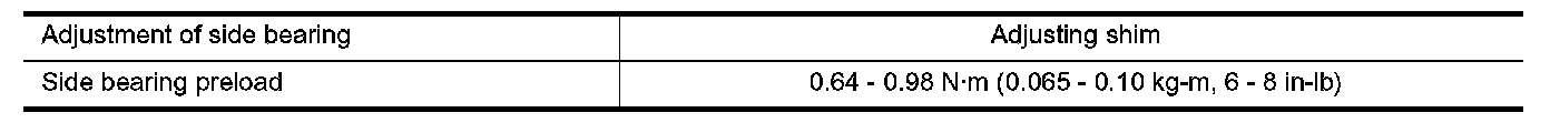 REAR FINAL DRIVE / SIDE GEAR ADJUSTMENT: