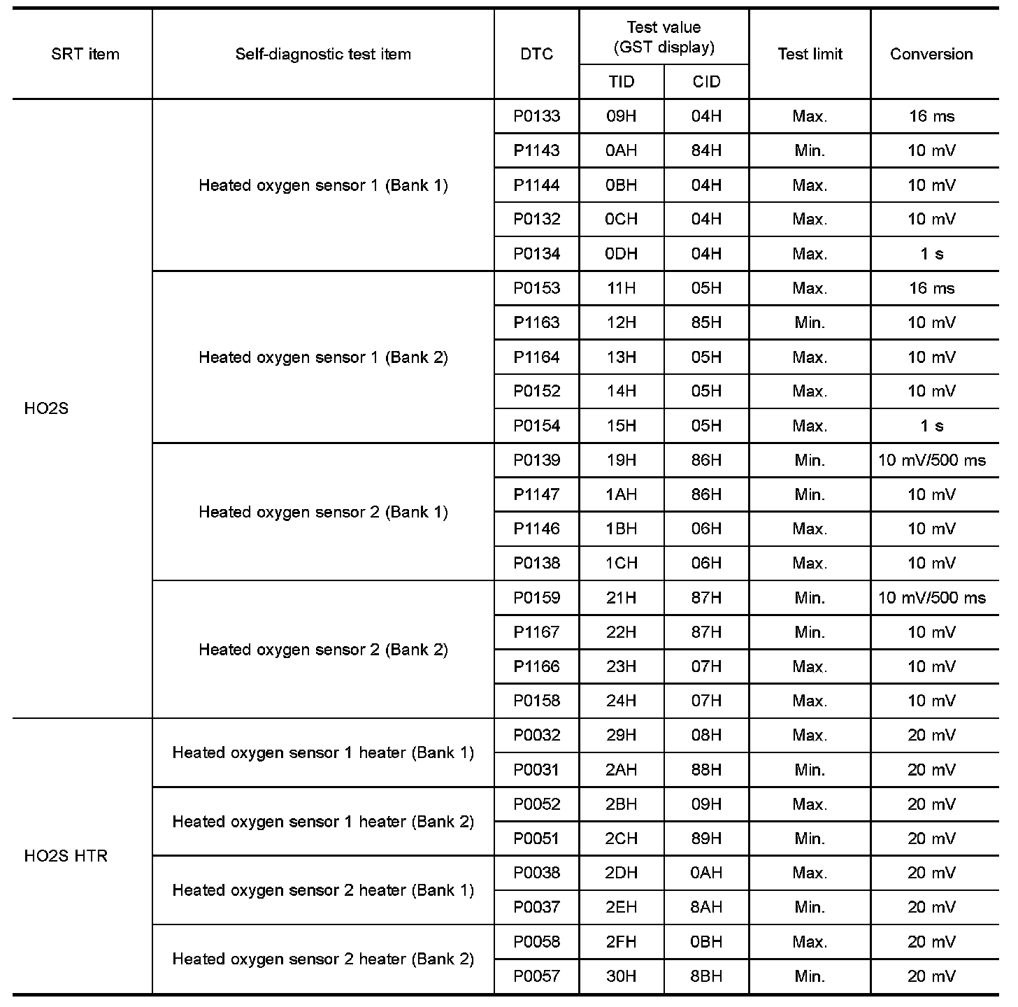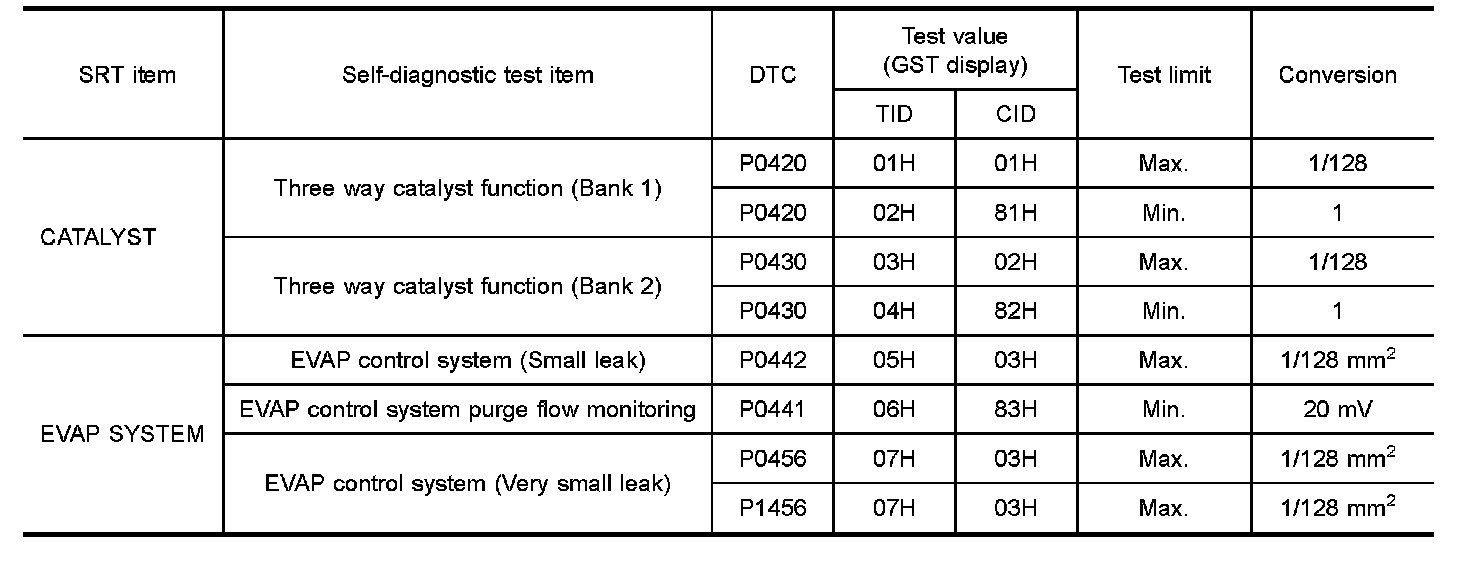 The test value is a parameter used to determine whether a system/circuit diagnostic test is "OK" or "NG" while being monitored by the ECM during self-diagnosis. The test limit is a reference value which is specified as the maximum or minimum value and is compared with the test value being monitored.