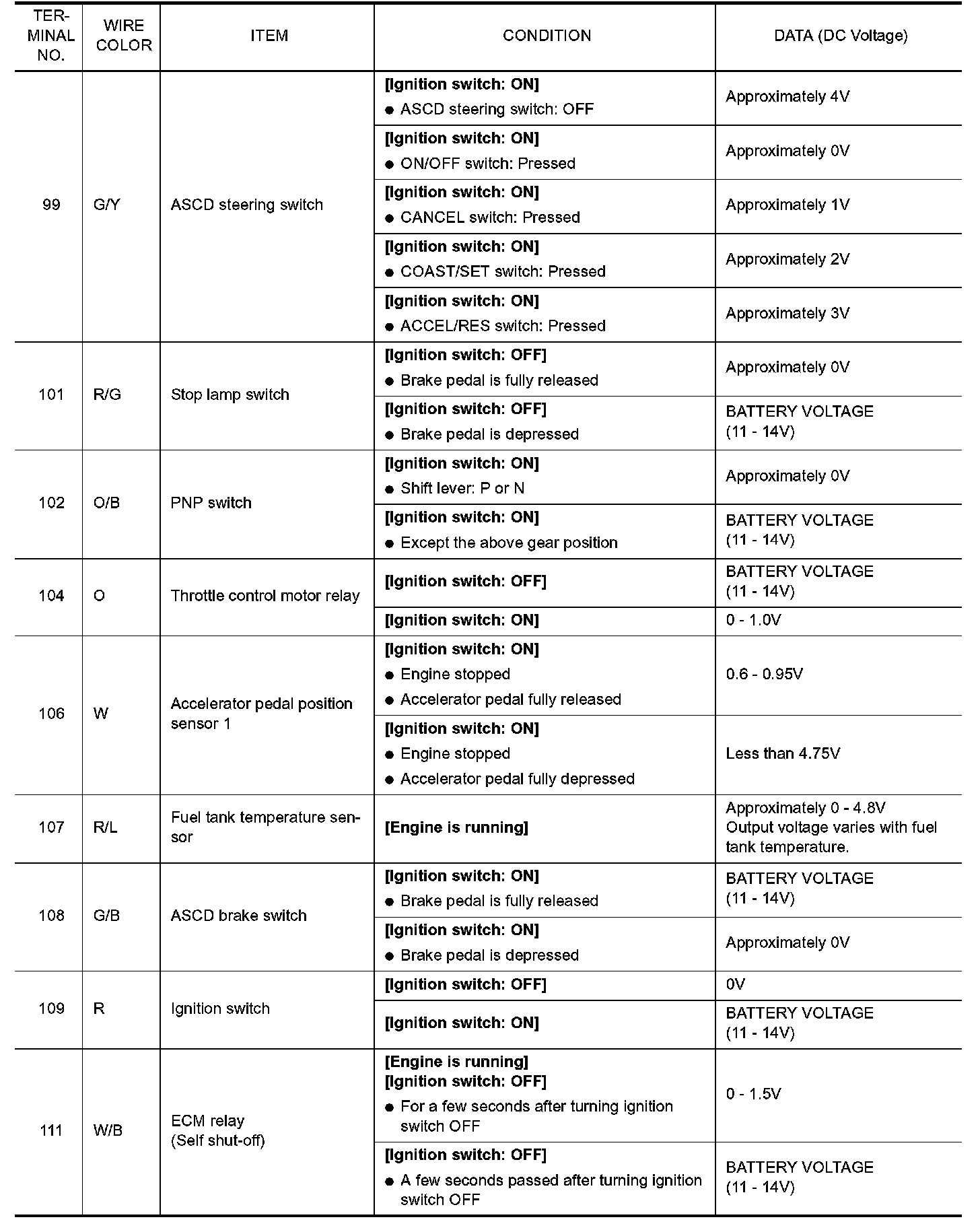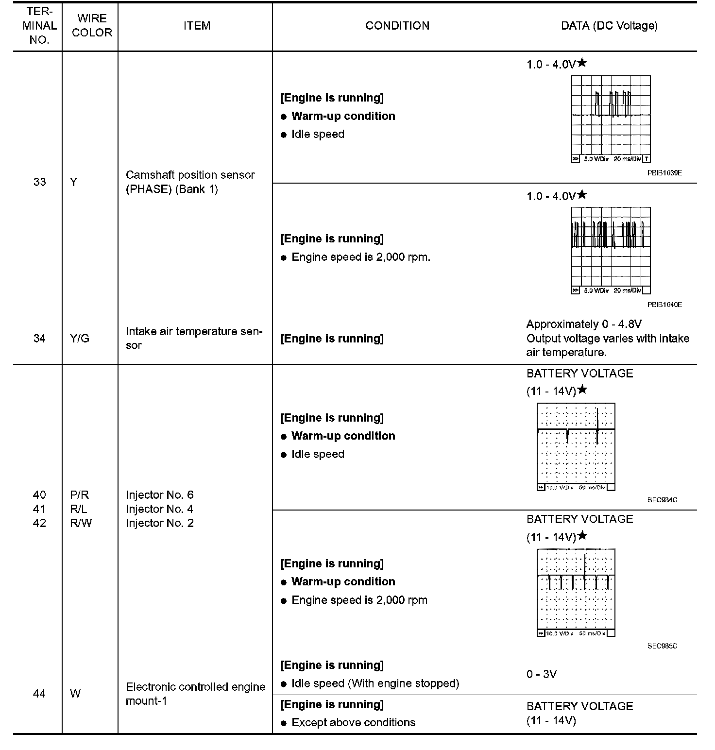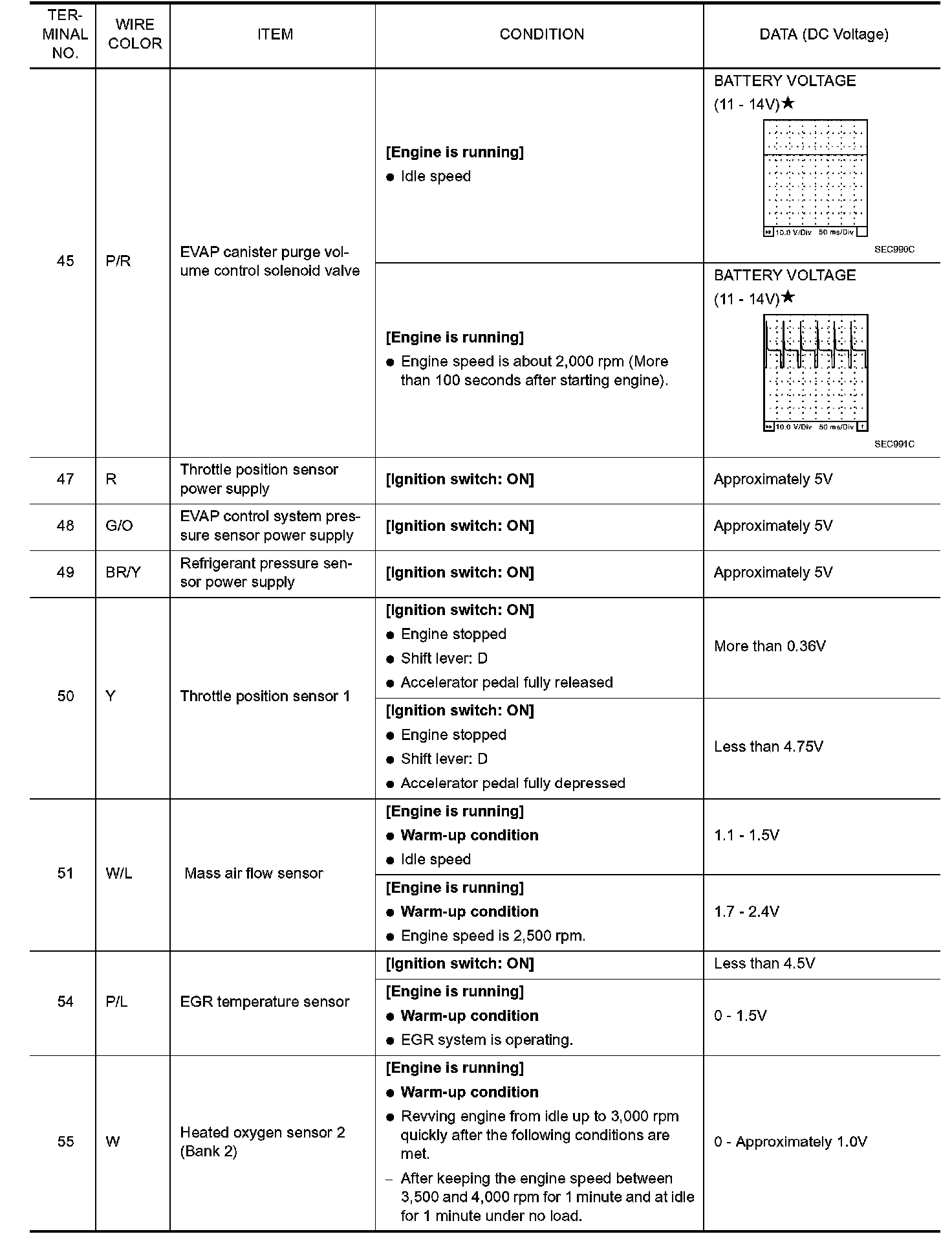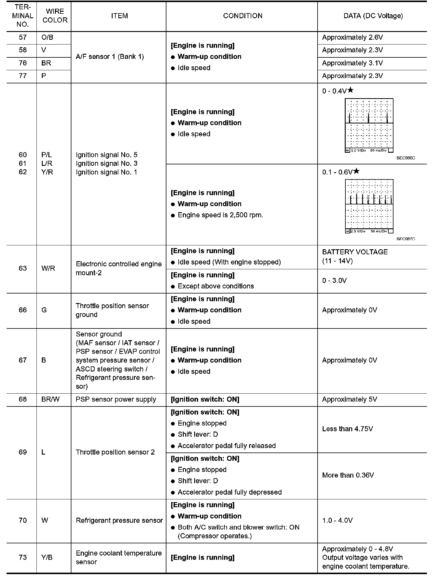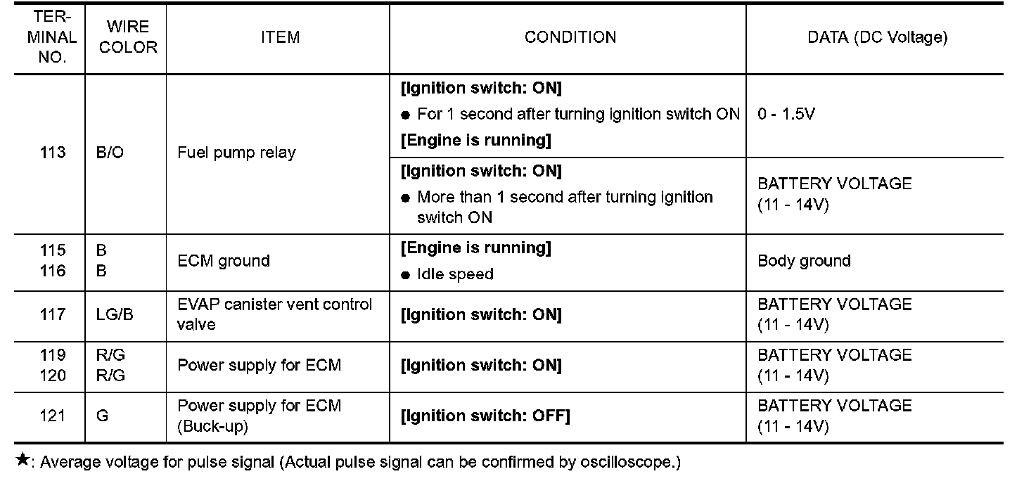 ECM Harness Connector Terminal Layout: