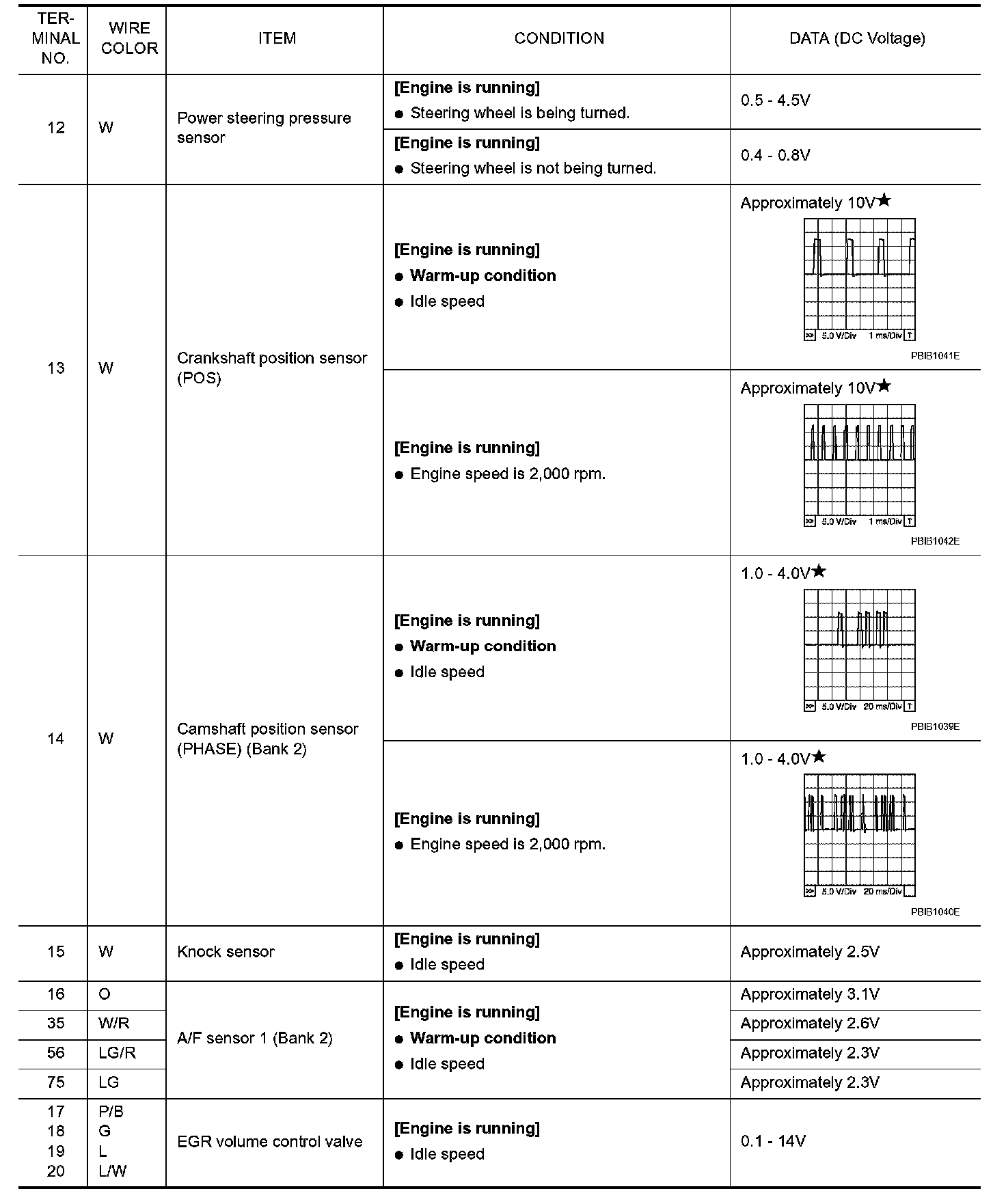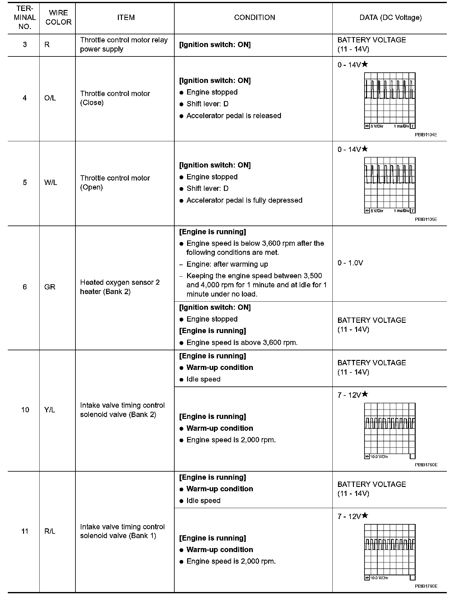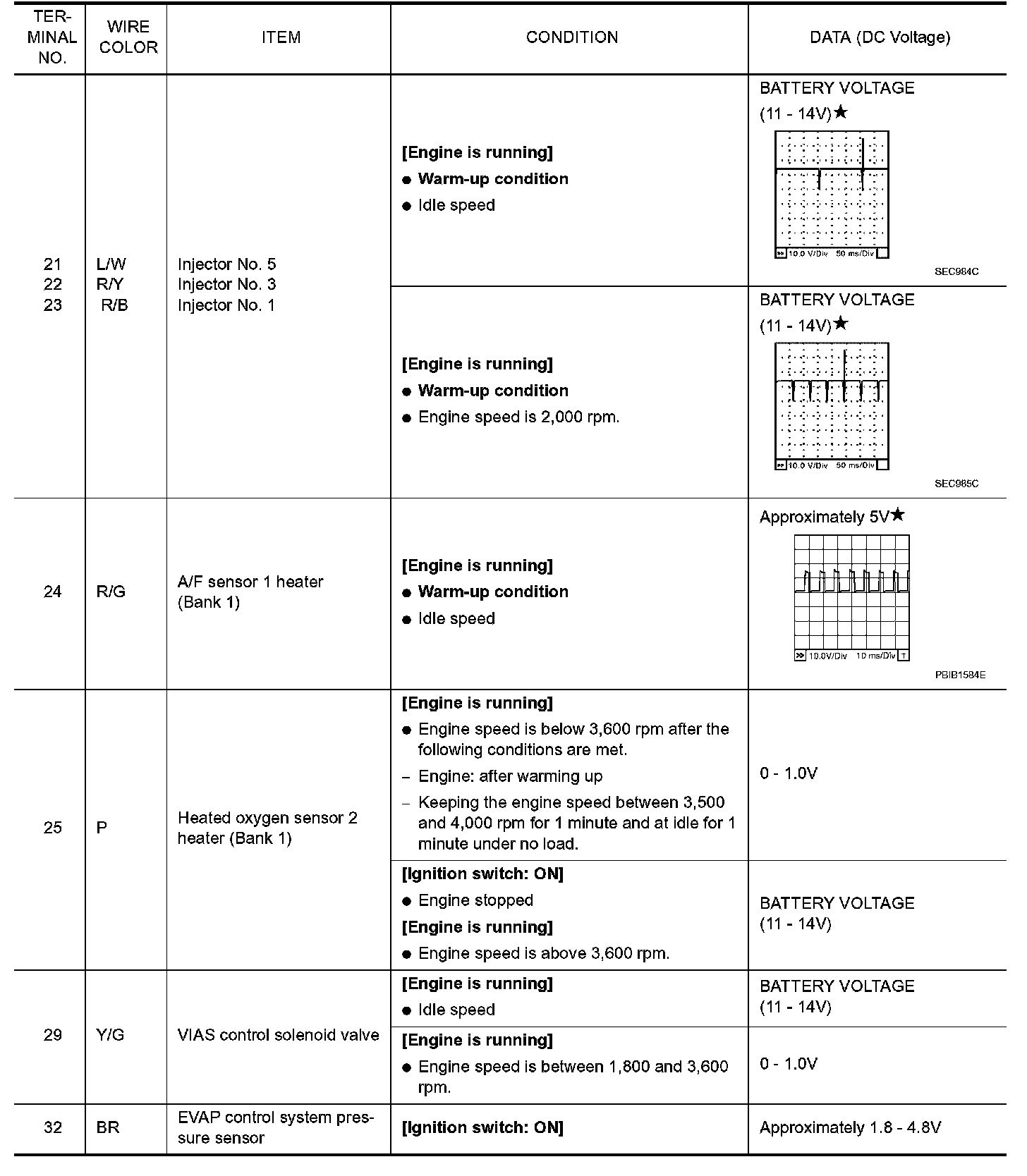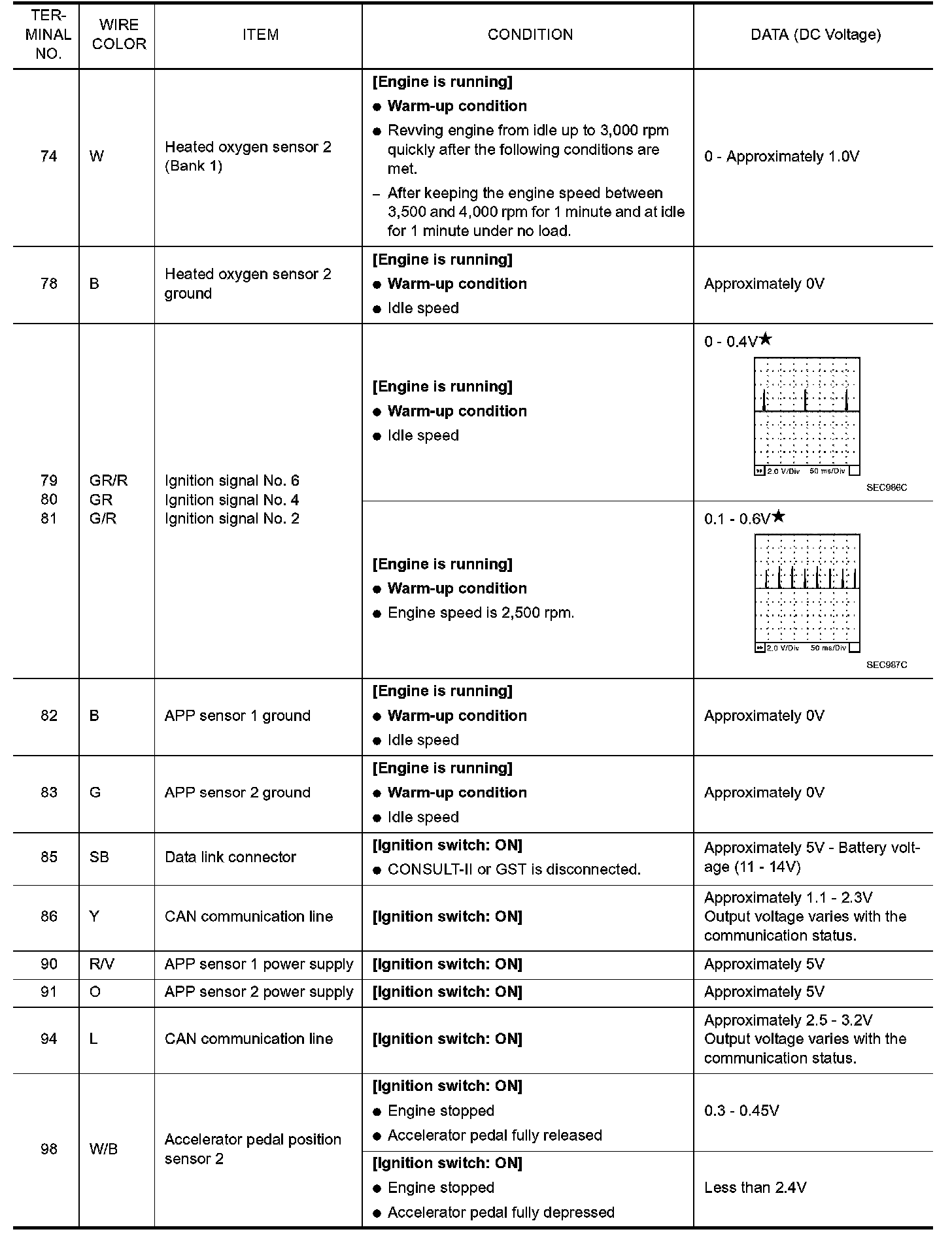 ECM Harness Connector Terminal Layout: