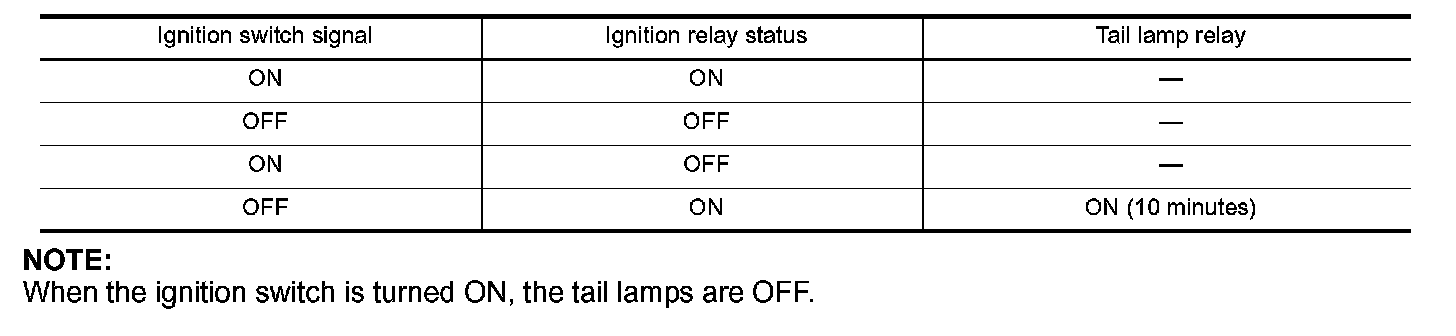 NOTE: When the ignition switch is turned ON, the tail lamps are OFF.