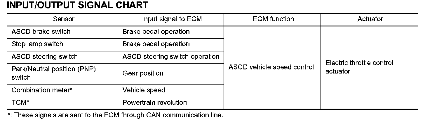 When the ECM detects any of the following conditions, the ECM will cancel the cruise operation and inform the driver by blinking indicator lamp.