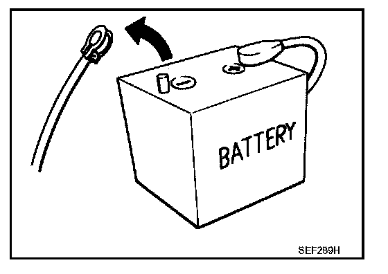 - Before removing parts, turn ignition switch OFF and then disconnect battery ground cable.