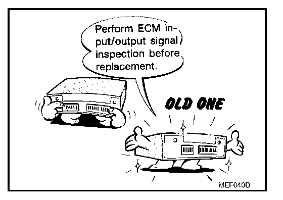 - Before replacing ECM, perform "ECM Terminals and Reference Value" inspection and make sure ECM functions properly. Refer to "ECM Terminals and Reference Value".