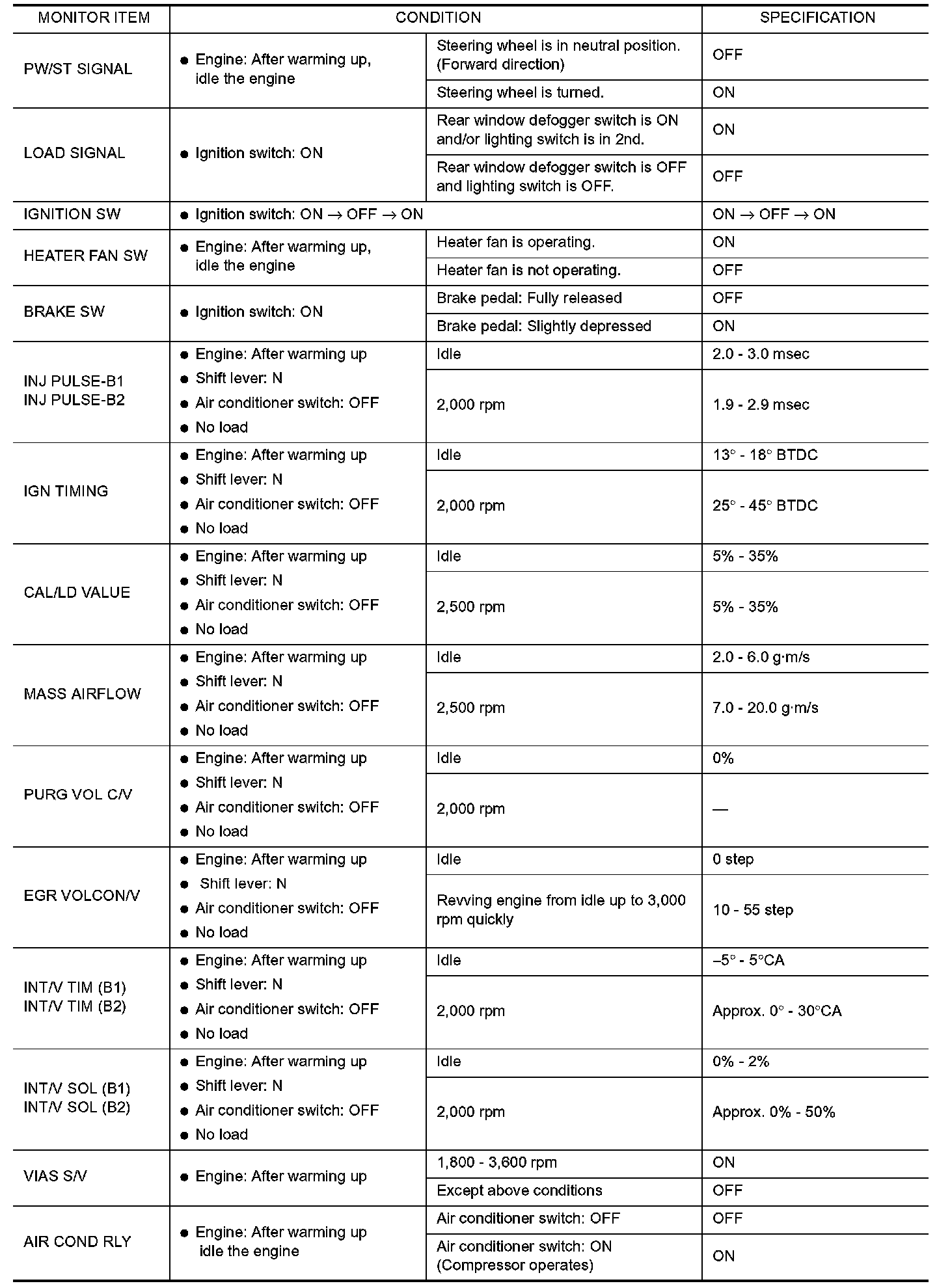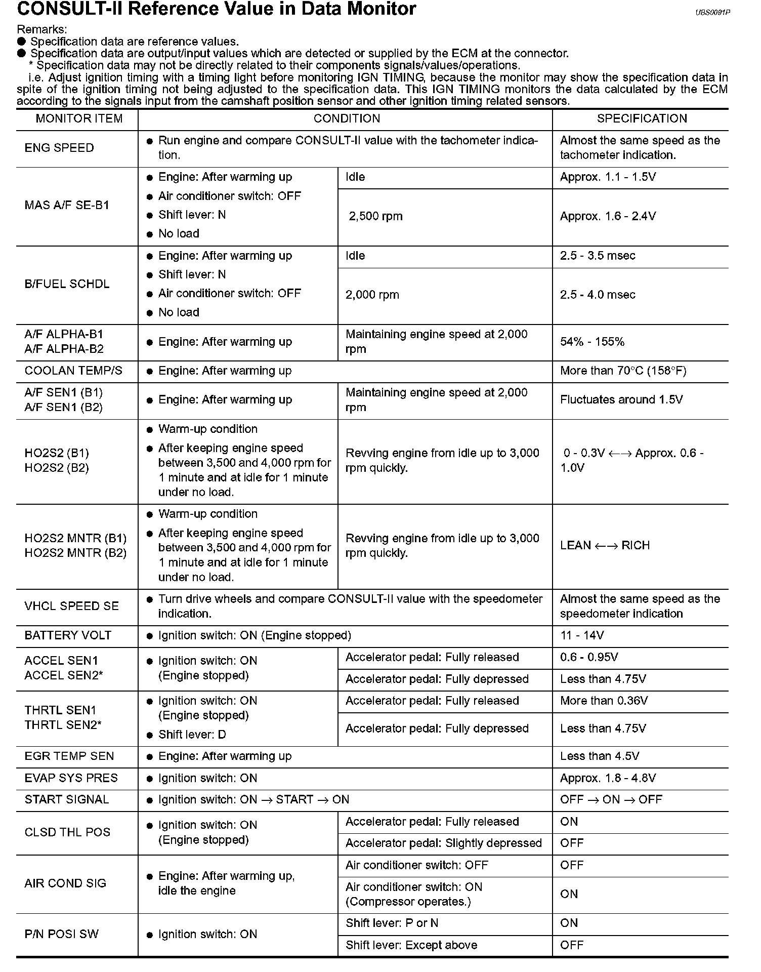 CONSULT-II Reference Value In Data Monitor Part 2: