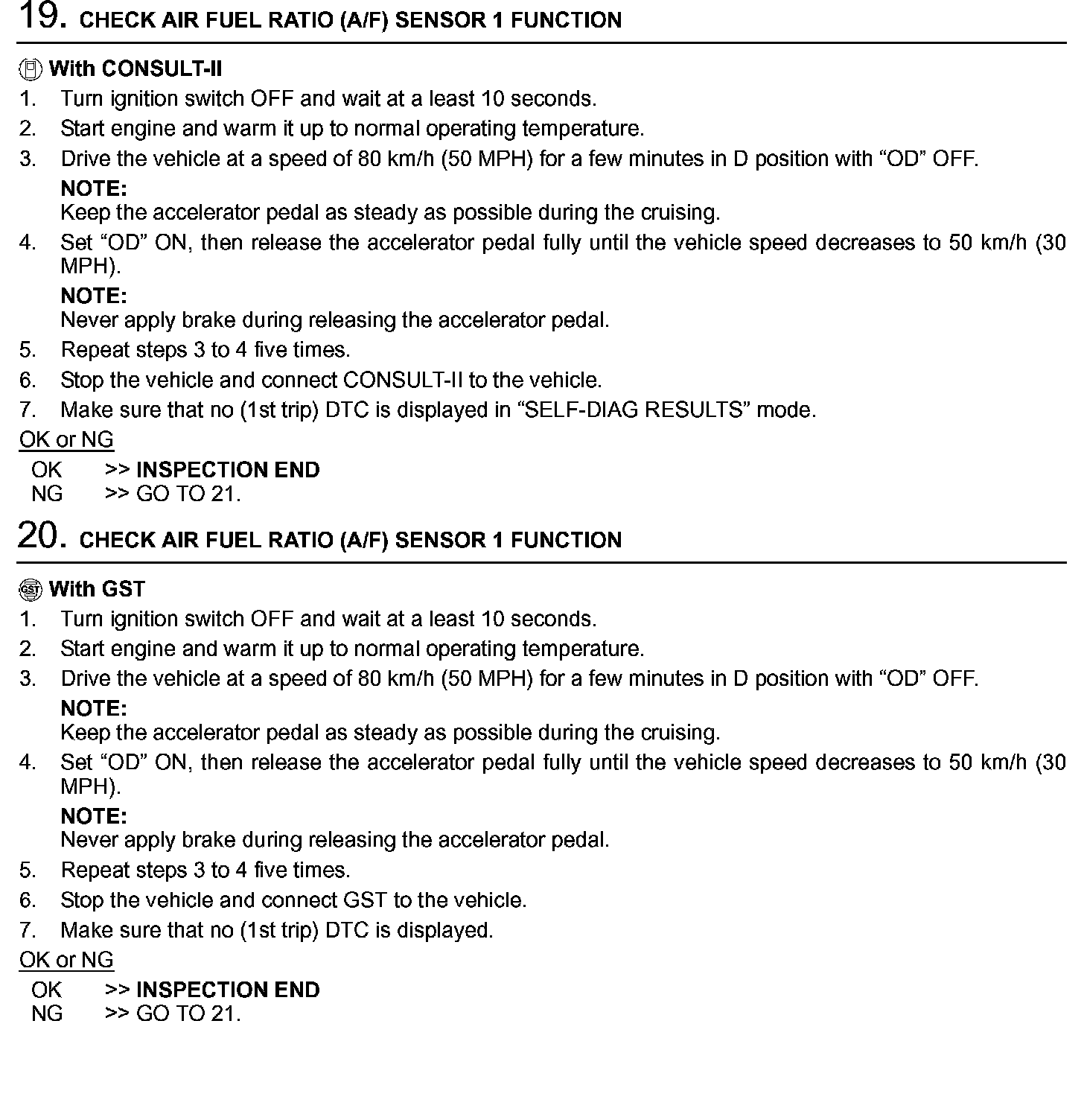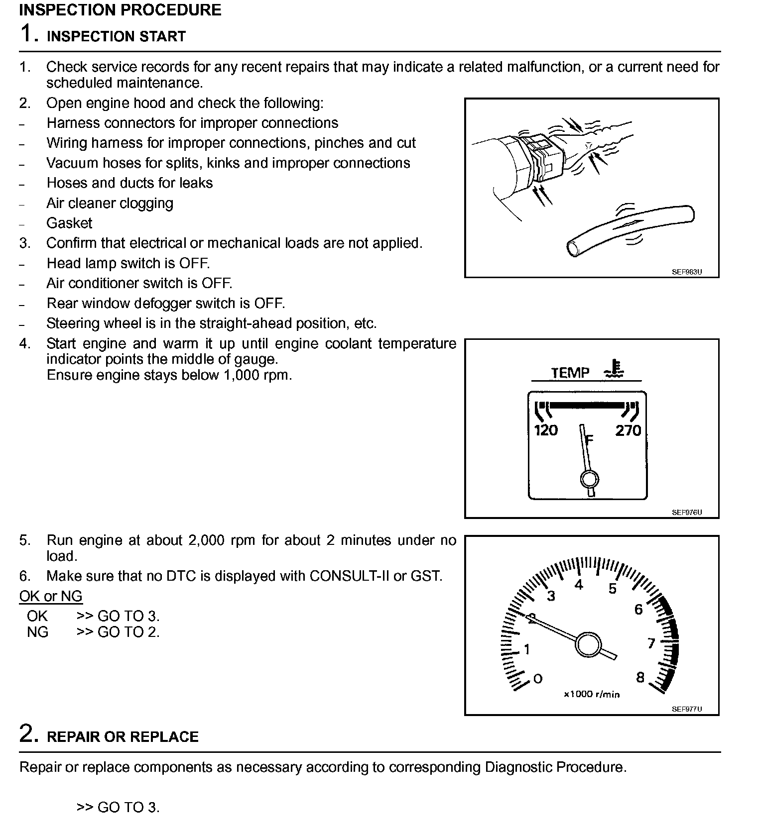 2. On air conditioner equipped models, checks should be carried out while the air conditioner is OFF.