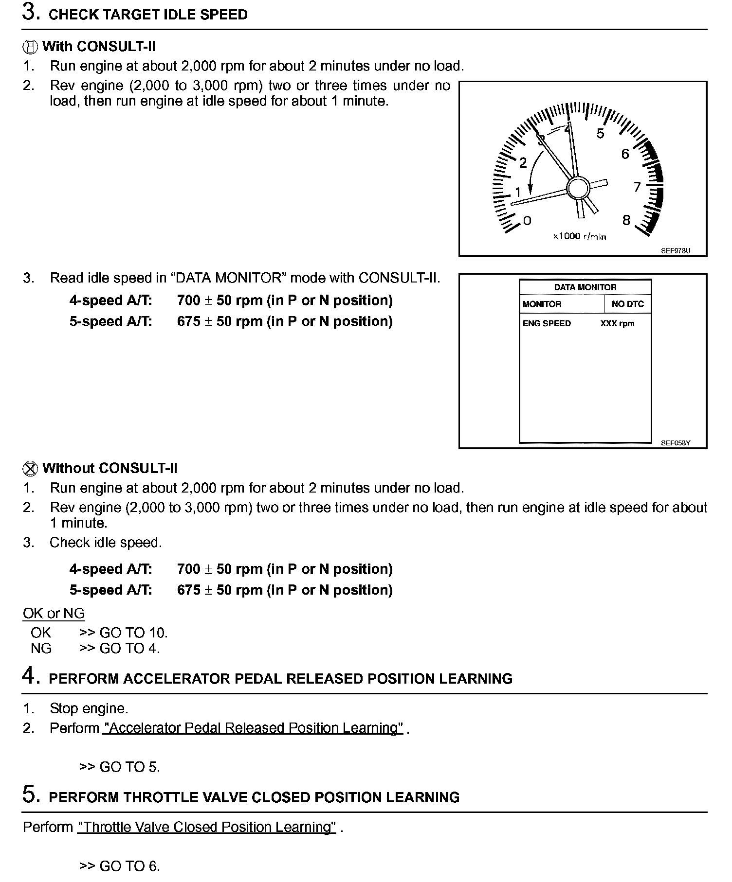 3. On automatic transmission equipped models, when checking idle rpm, ignition timing and mixture ratio, checks should be carried out while shift lever is in N position.