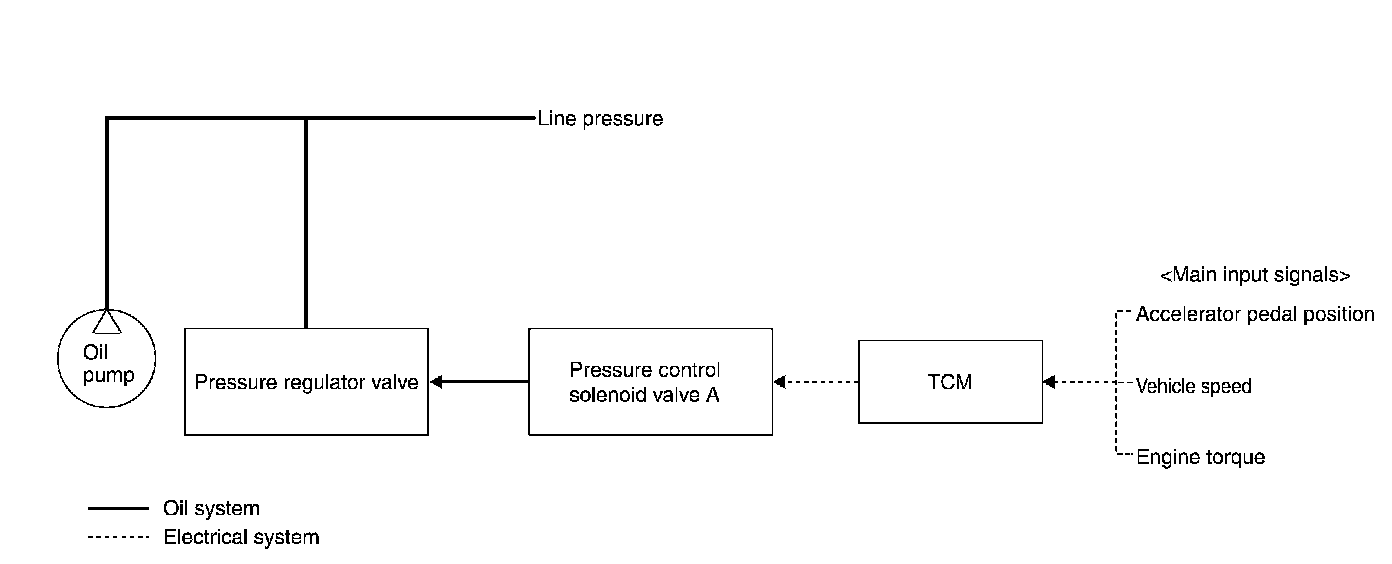 In order to obtain the most appropriate line pressure characteristic to meet the current driving state, the TCM controls the pressure control solenoid A current valve and thus controls the line pressure.