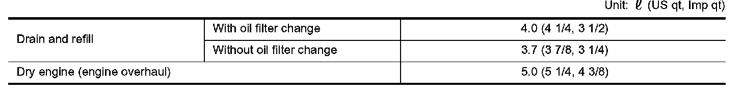 OIL CAPACITY (APPROXIMATE)