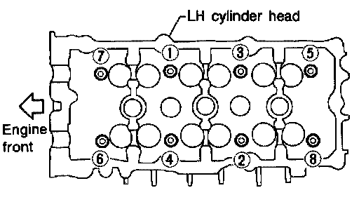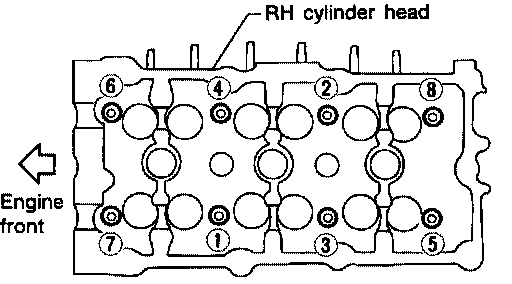 Cylinder Head Torque and SequenceInstall the cylinder heads on the cylinder block. Tighten the cylinder head bolts in five steps in the order shown.