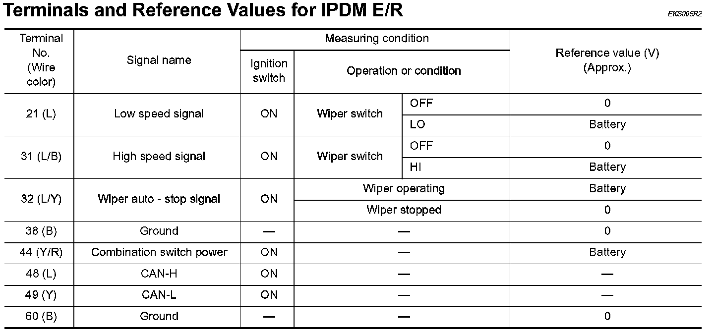 Terminals And Reference Values For IPDM E/R: