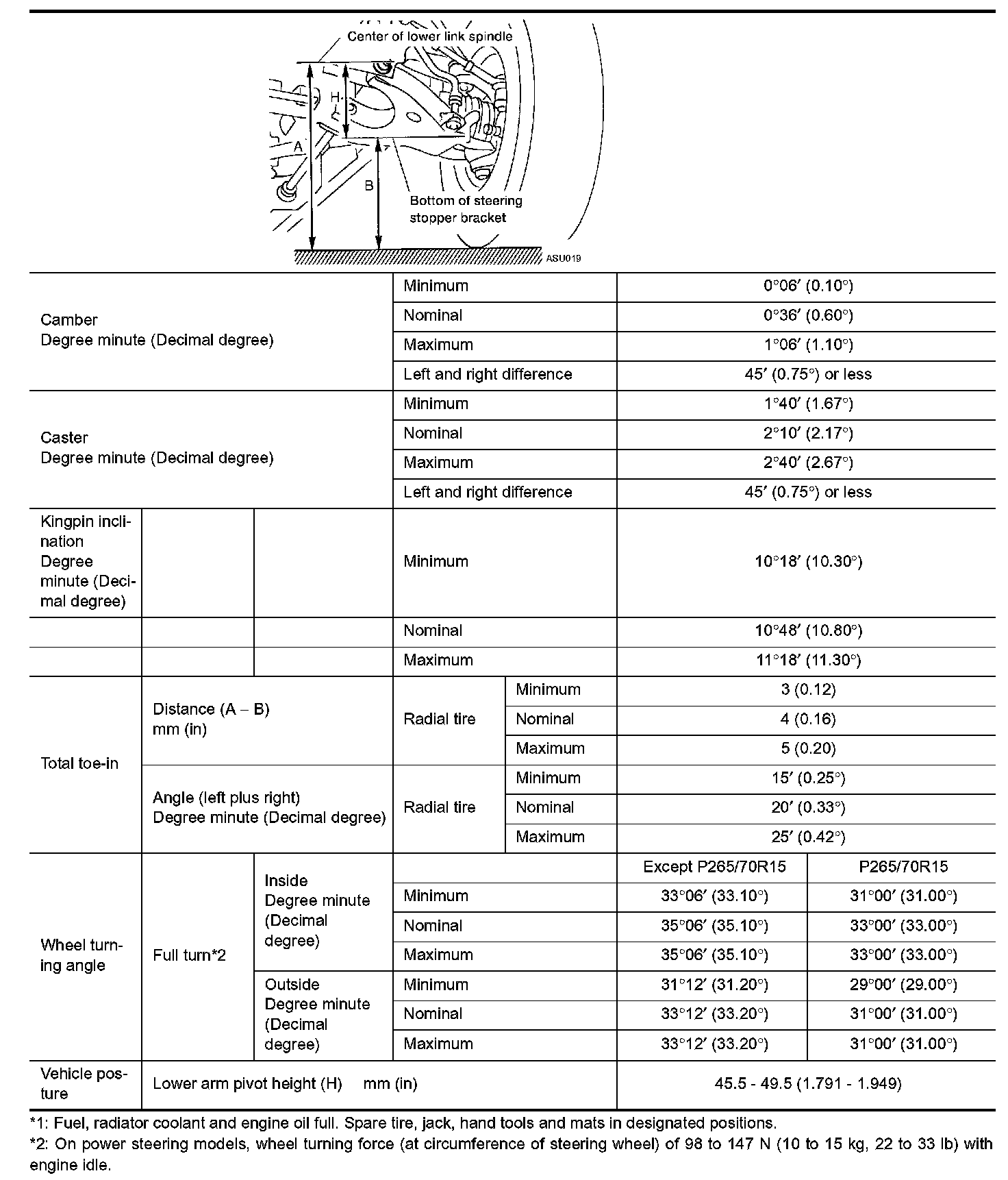 FRONT SUSPENSION - Wheel Alignment (Unladen) [4WD]: