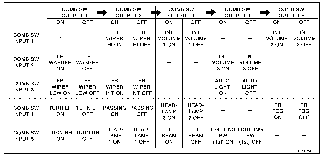 - BCM reads operation status of combination switch by the combination as shown in the table.