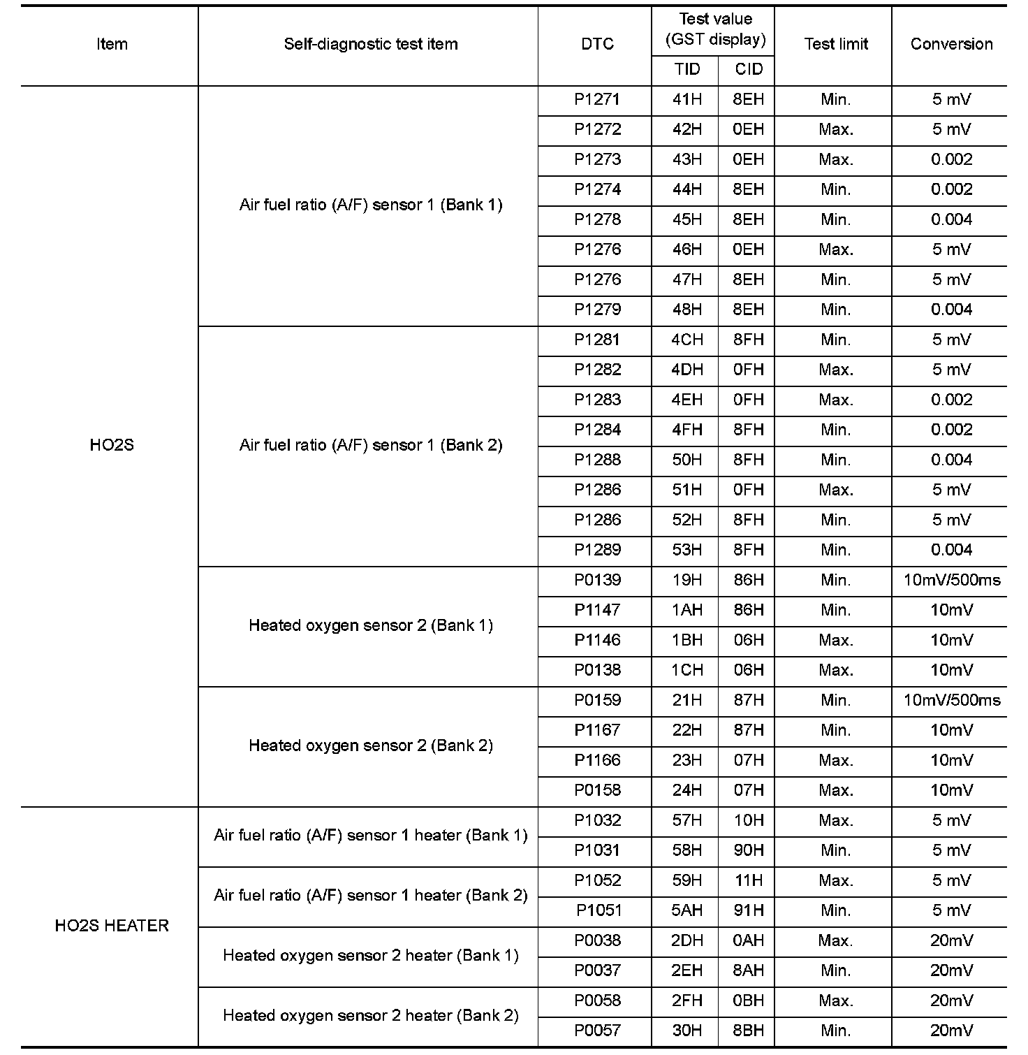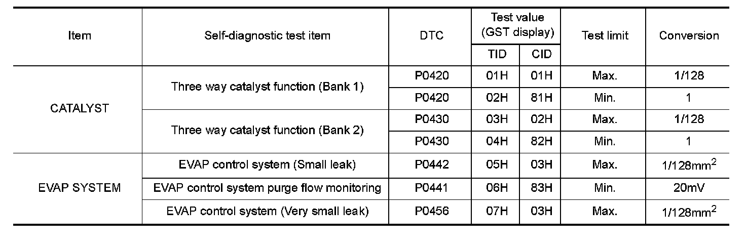 The test value is a parameter used to determine whether a system/circuit diagnostic test is OK or NG while being monitored by the ECM during self-diagnosis. The test limit is a reference value which is specified as the maximum or minimum value and is compared with the test value being monitored.