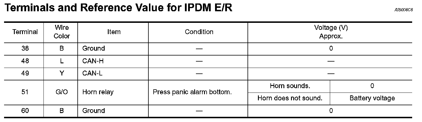 Terminals and Reference Value For IPDM E/R