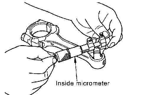 Measure the inner diameter of connecting rod bushing with inside micrometer.