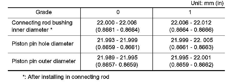 ^ Piston pin (piston pin hole) grade is provided only for the parts installed at the plant. For service parts, no piston pin grades can be selected. (Only "0" grade is available.)