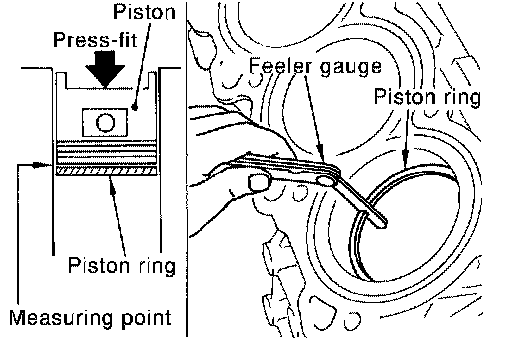 ^ If the measured value exceeds the limit, replace piston ring, and measure again. If it still exceeds the limit, re-bore cylinder and use oversize piston and piston rings.