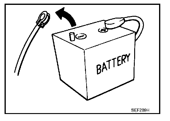 - Before removing parts, turn ignition switch OFF and then disconnect battery ground cable.